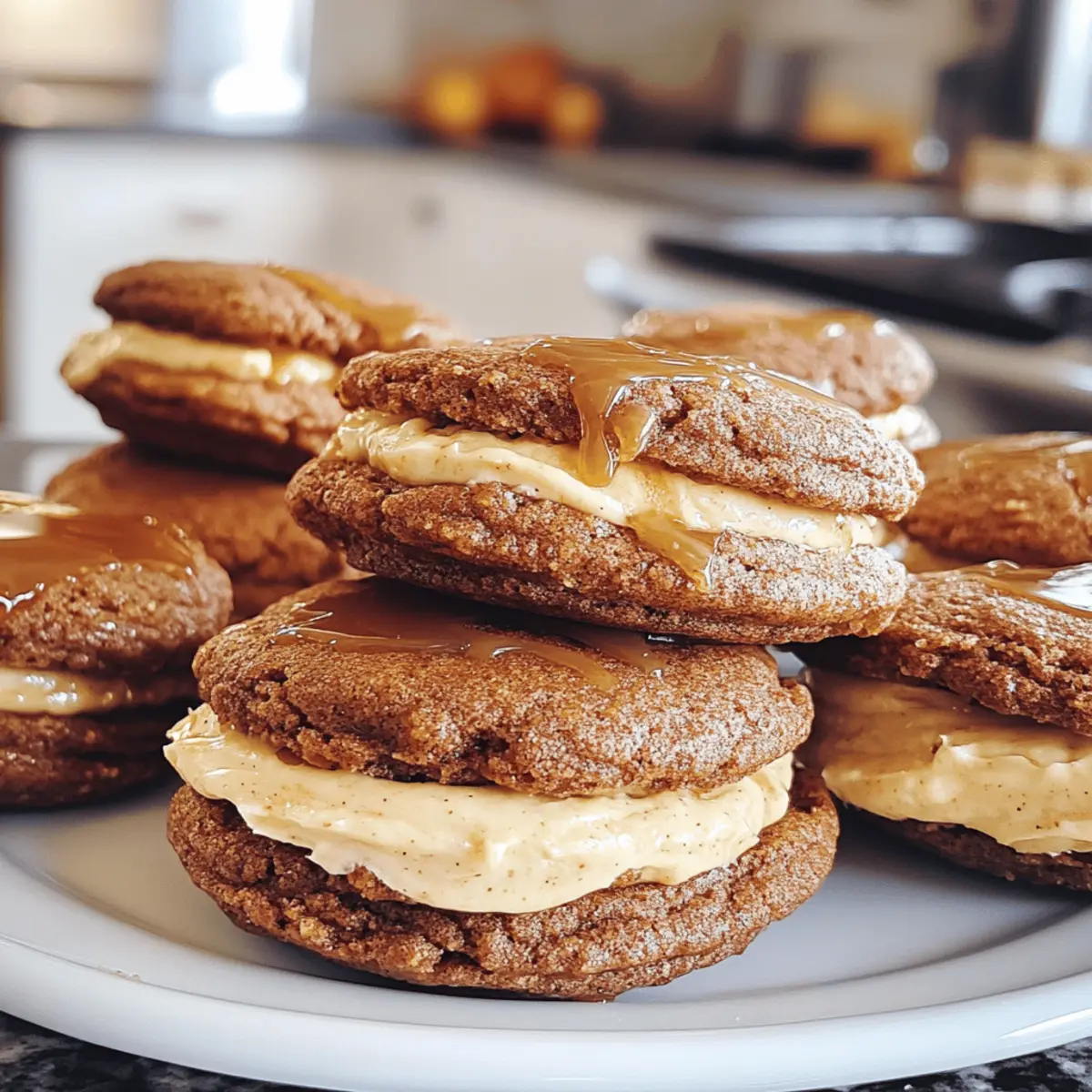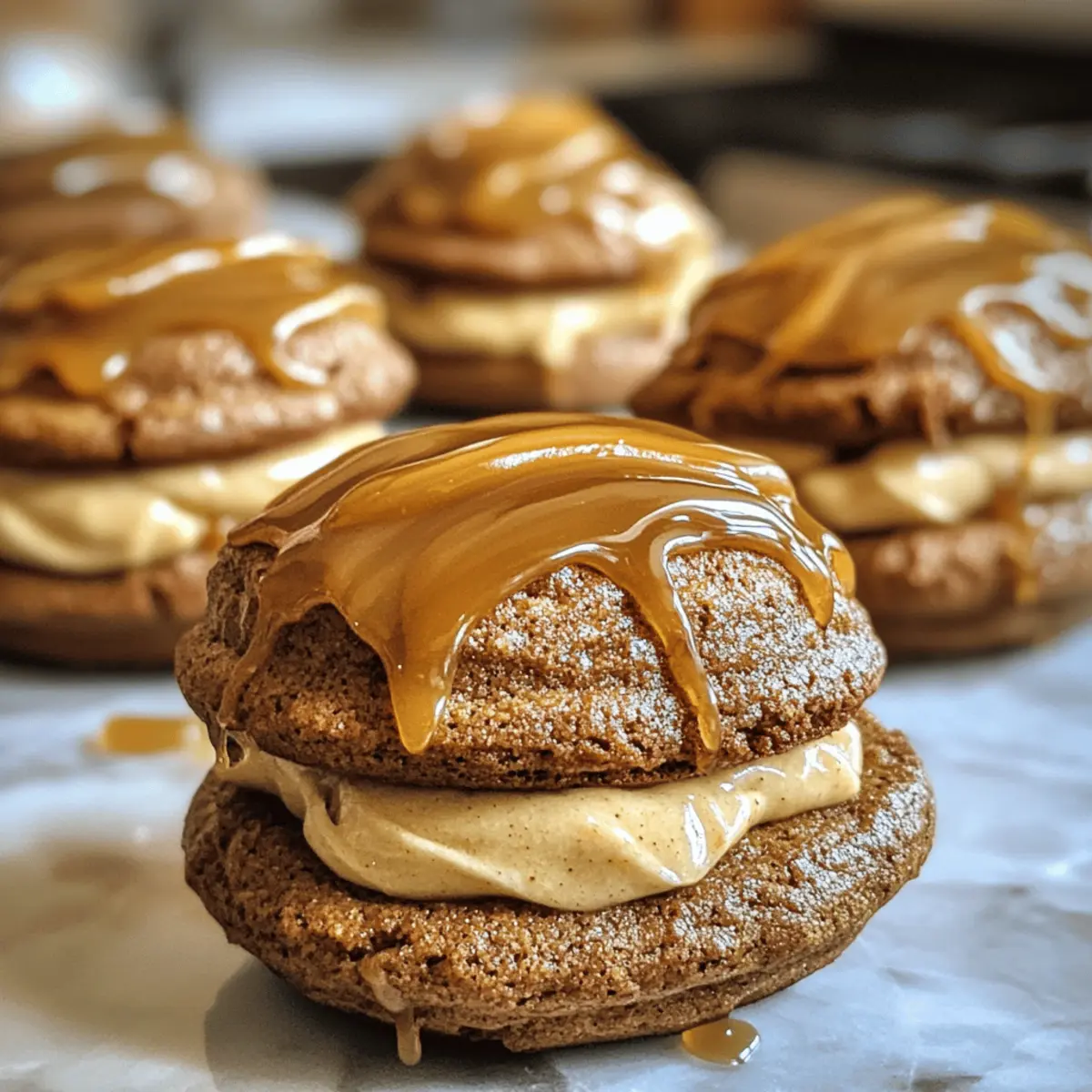 - Assemble Whoopie Pies: Pair cookies, pipe on buttercream, drizzle caramel, and top with another cookie. Chill if desired.