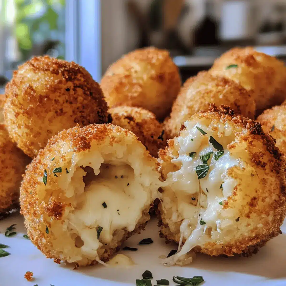 As I stood in my kitchen, the aroma of sizzling golden breadcrumbs danced through the air, instantly whisking me away to an Italian piazza. Today, I’m thrilled to share my recipe for Authentic Baked Arancini with Gooey Mozzarella—an irresistible twist on a classic Sicilian dish. Unlike their fried counterparts, these oven-baked delights are a healthier option, making them perfect for any occasion, whether you’re hosting a gathering or just craving a savory snack. With creamy Arborio rice, rich Parmesan, and that luscious gooey mozzarella center, every bite delivers the comforting flavors of Italy. Plus, you can easily adapt this recipe for gluten-free or vegetarian diets, ensuring everyone at your table can indulge. Ready to elevate your appetizer game? Let’s dive into making these scrumptious arancini together!