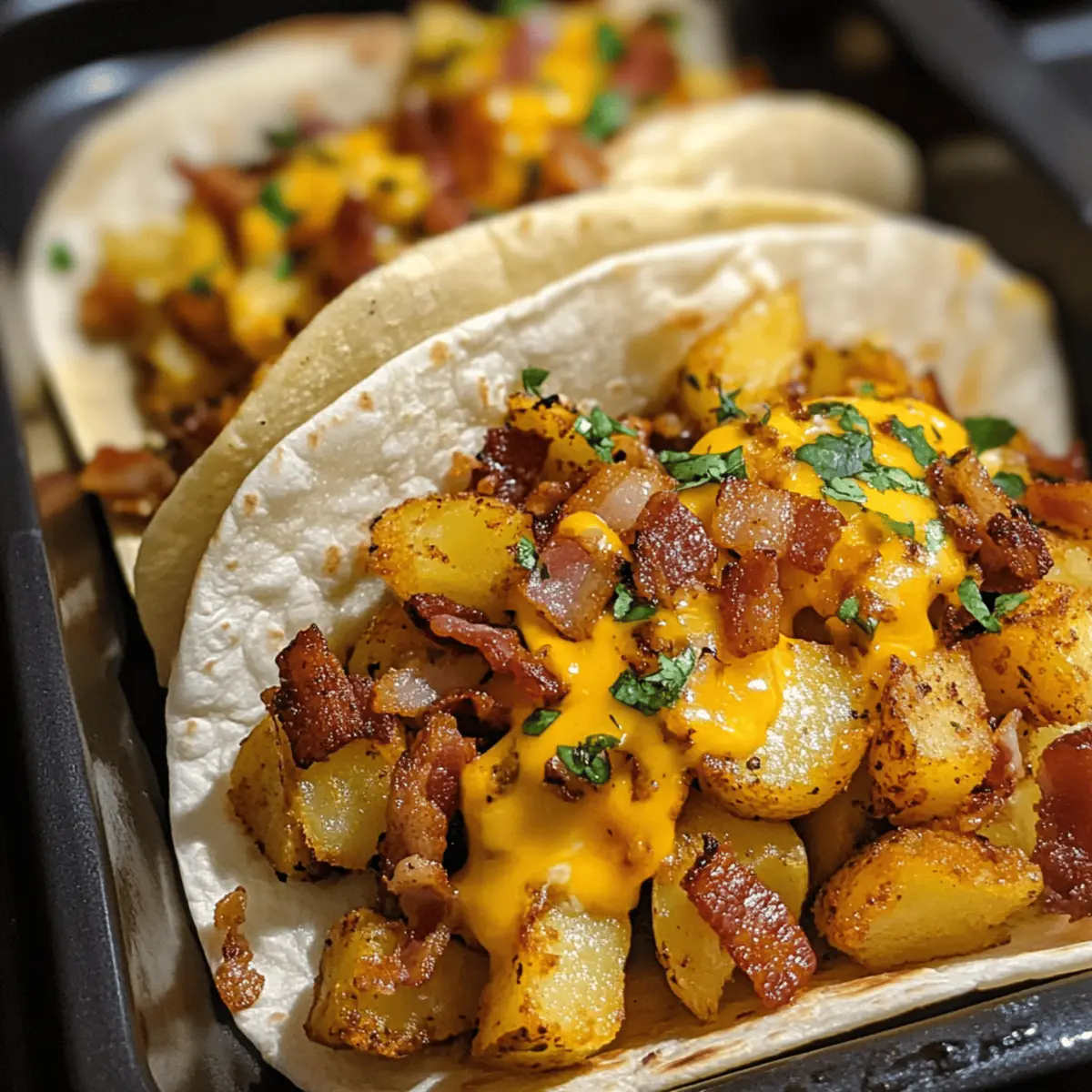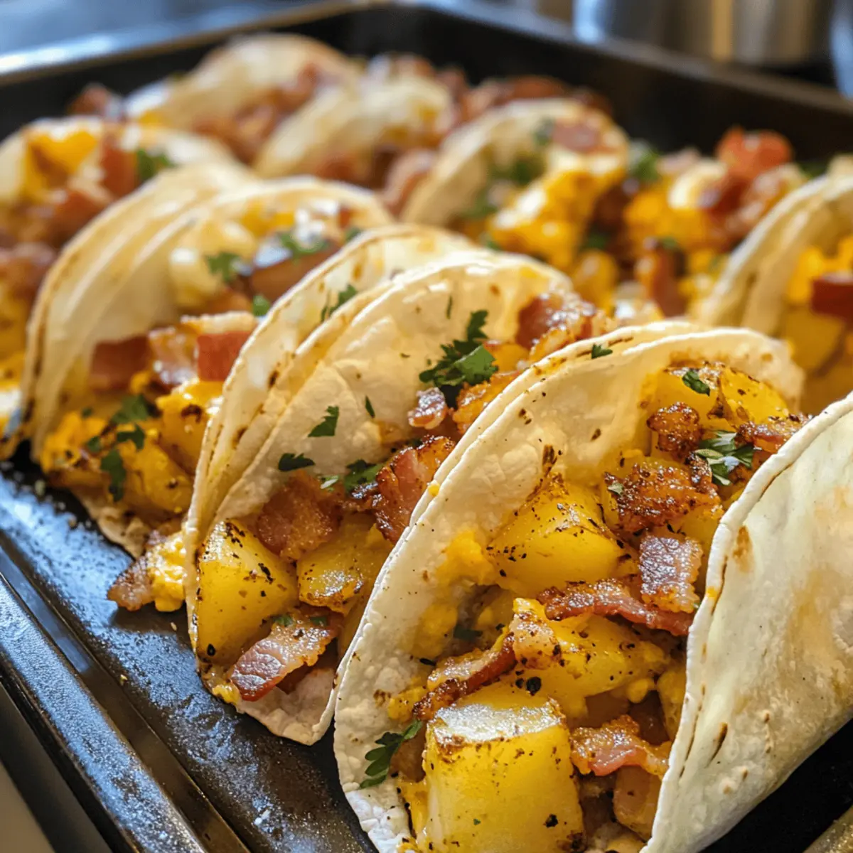 As I stepped into the kitchen this morning, the aroma of sizzling bacon filled the air, instantly whisking me away to a cozy breakfast nook. Today, I’m thrilled to share my recipe for Easy Baked Breakfast Tacos with Crispy Potatoes and Eggs! This delightful dish combines the warmth of home cooking with the simplicity of quick prep, making it the perfect solution for busy mornings or lazy Sunday brunches. Not only can these baked breakfast tacos be made ahead of time, but you can also customize them with whatever fillings you have on hand—be it savory sausage, vibrant veggies, or your favorite cheese. Trust me, these tacos will become a comfort food staple that your family will adore. Ready to elevate your breakfast game? Let’s dive in!
