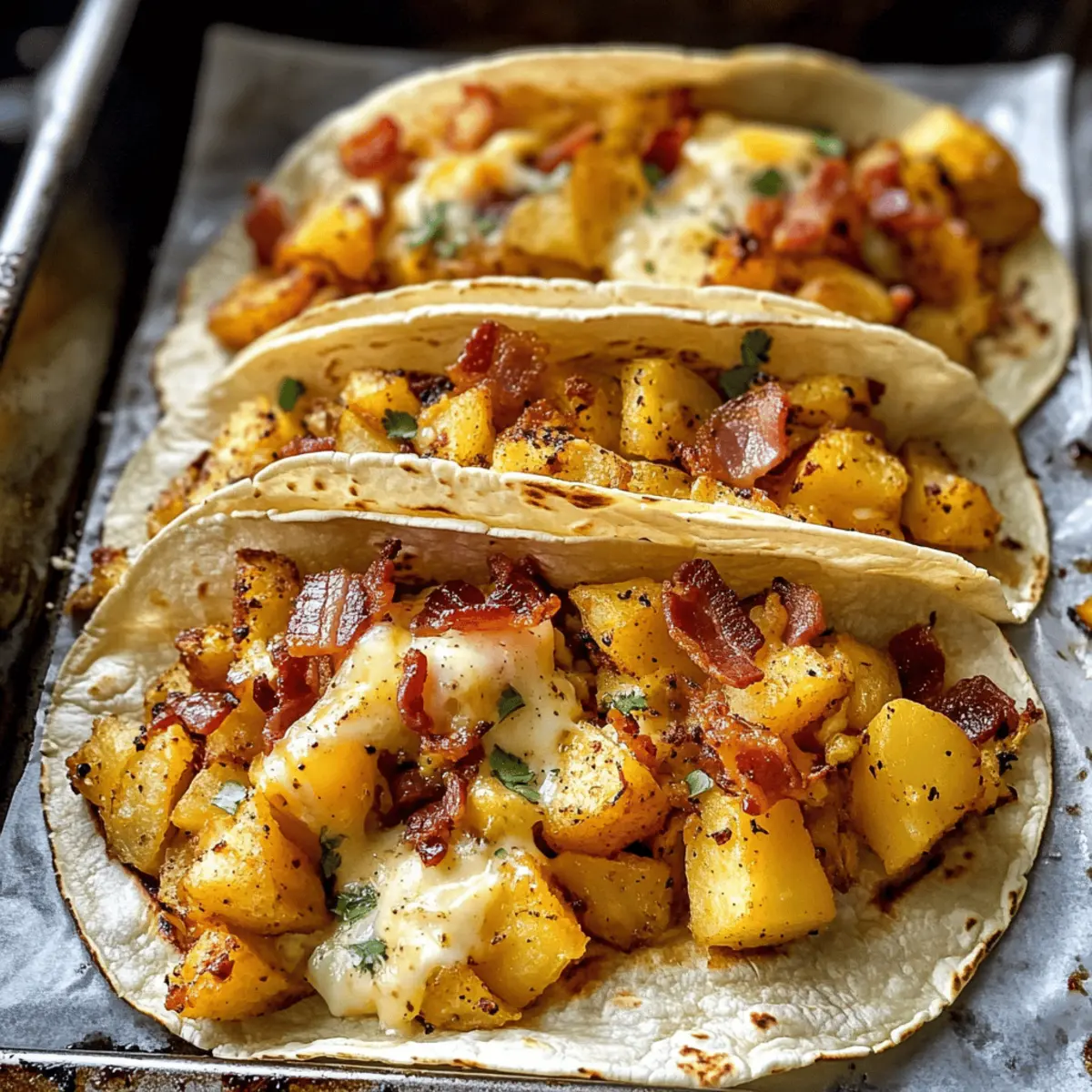 Breakfast Potatoes: Crispy breakfast potatoes seasoned with herbs make a delightful side, echoing the potato filling of your tacos in a different form.