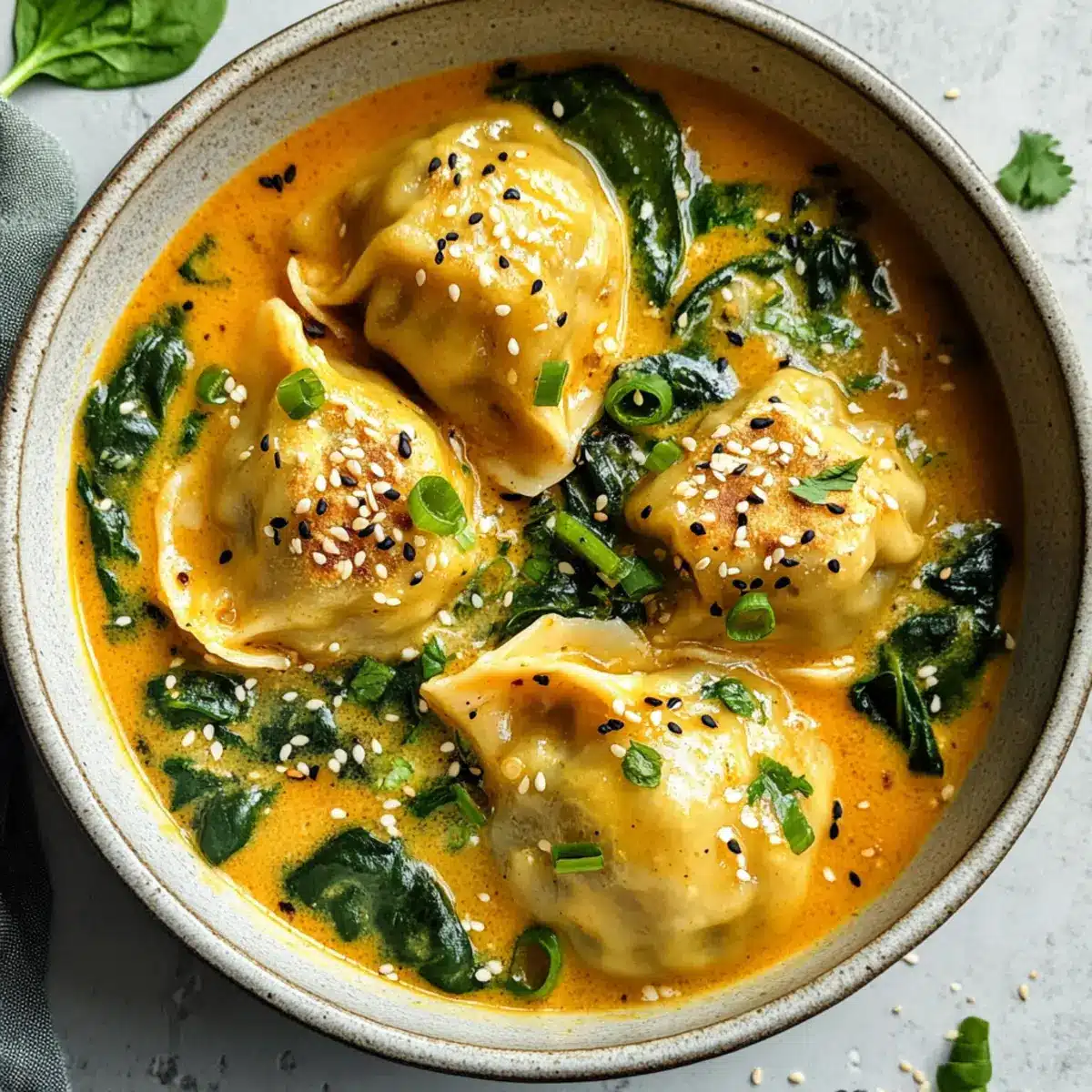 Hearty and Flavorful: This creamy coconut curry broth envelops the dumplings in a warm, inviting embrace, making it a dish everyone will enjoy.