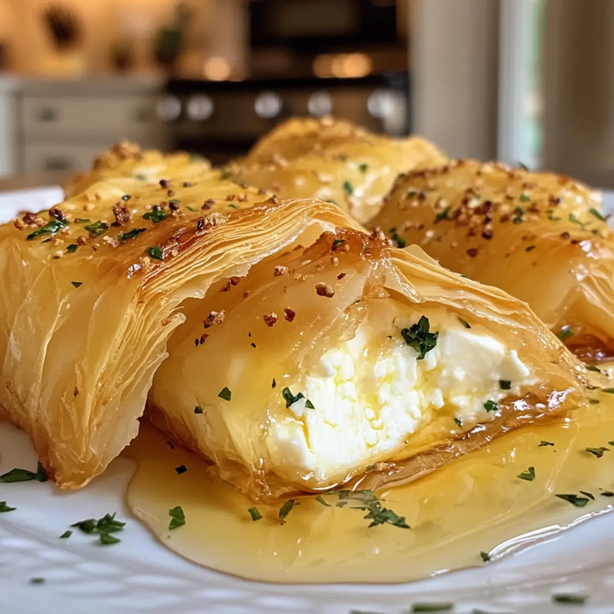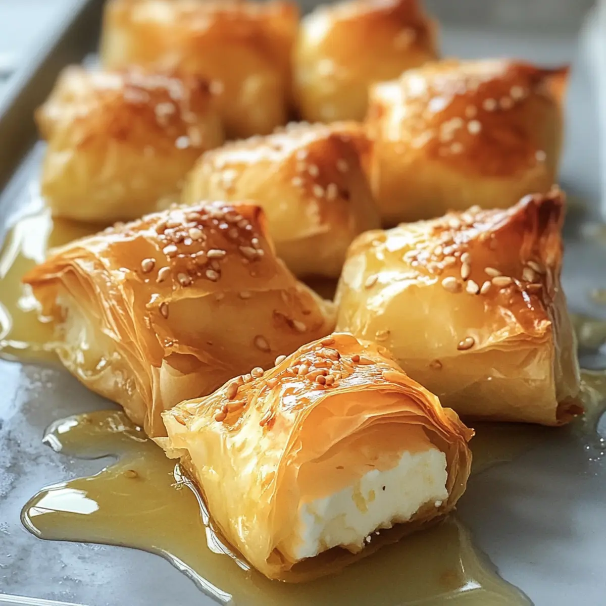 Savory Baked Feta Bites in Phyllo Pastry with Honey Drizzle