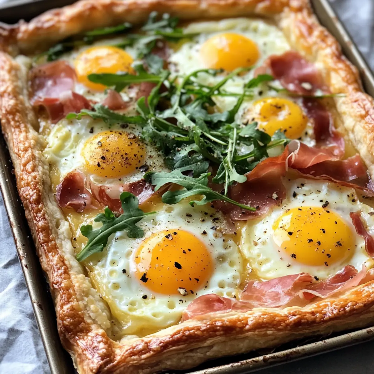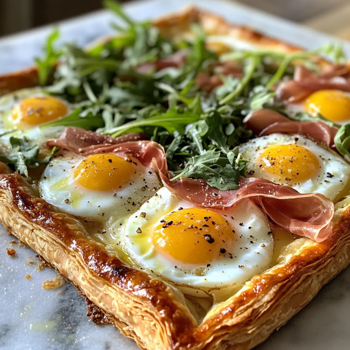 If you notice your tart puffing up, don’t worry! Just use a fork to prick several small holes in the puff pastry before the first bake. This allows steam to escape, keeping the crust nice and flat, which helps support the eggs and toppings beautifully.