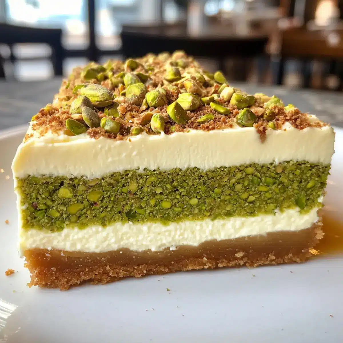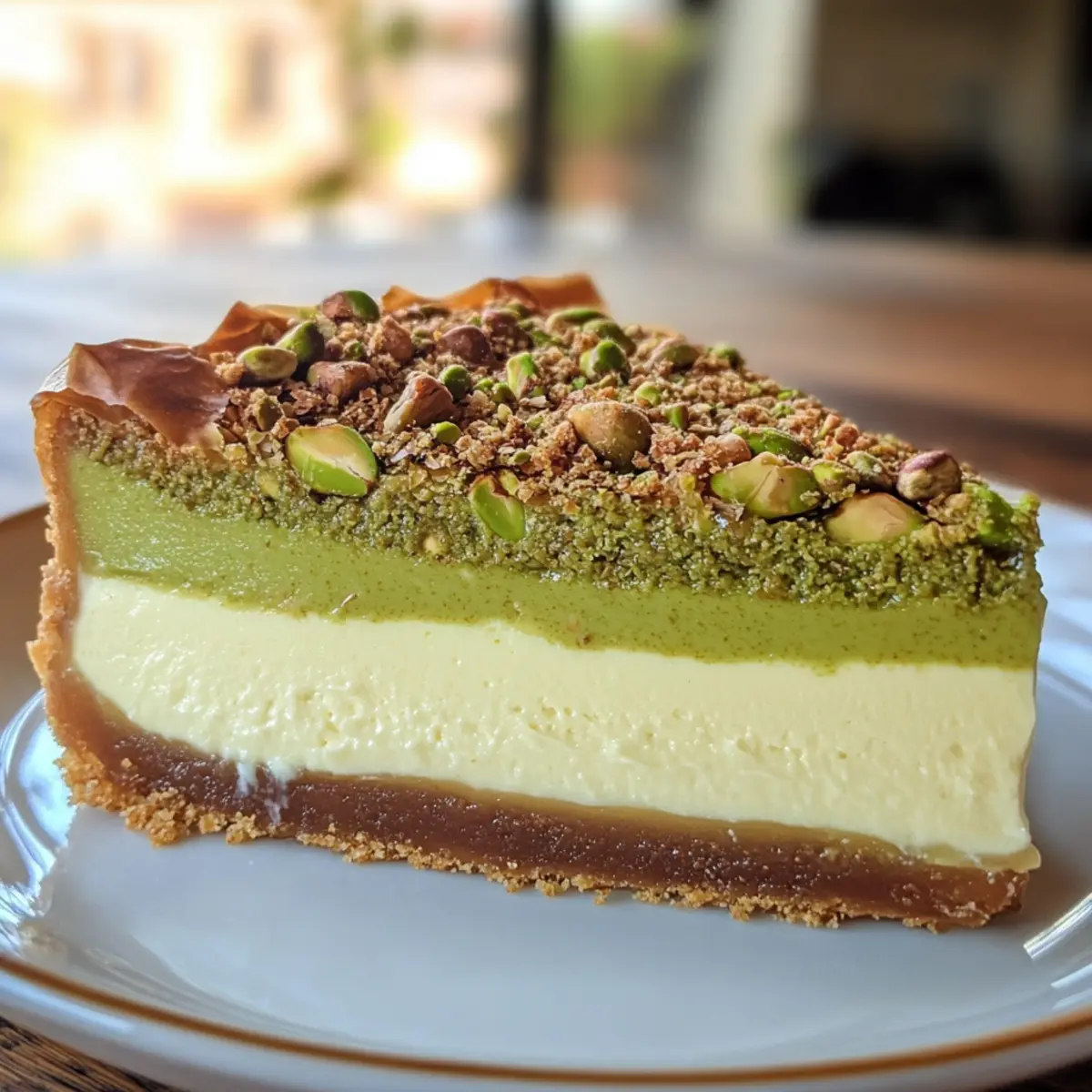 Unique Flavor Profile: With a nutty pistachio shortbread crust and honey-infused filling, this cheesecake marries the best of Middle Eastern and Western culinary traditions in one striking dish.