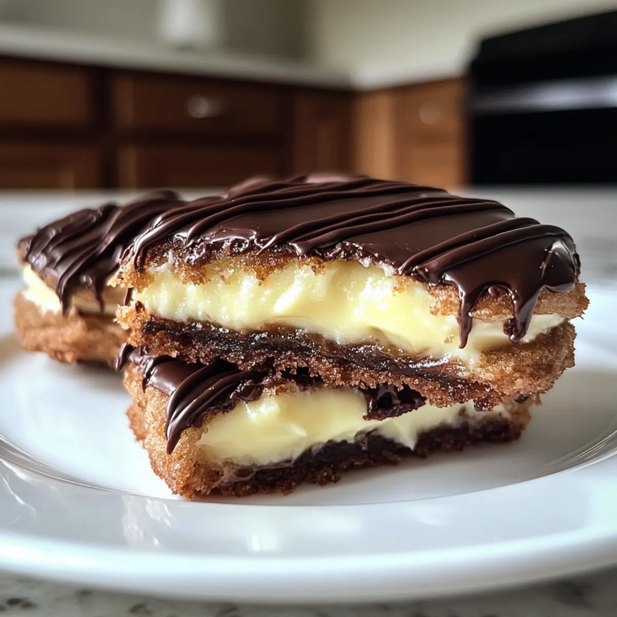 Allow the drizzled chocolate to set for about 10 to 15 minutes at room temperature. Once set, your Easy Boston Cream Pie Cookie Bites are ready to be served! Arrange them on a platter and watch them disappear as everyone enjoys these delightful, bite-sized treats.