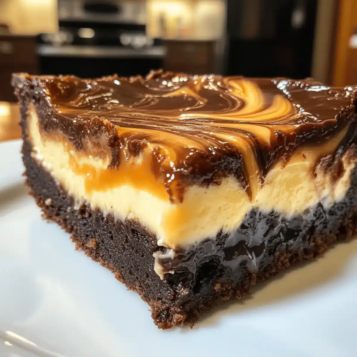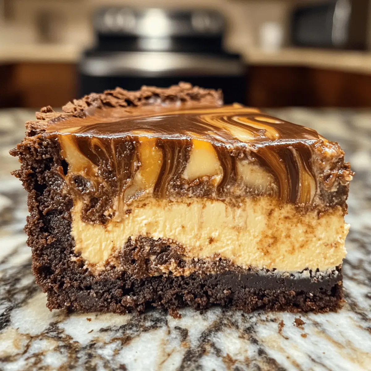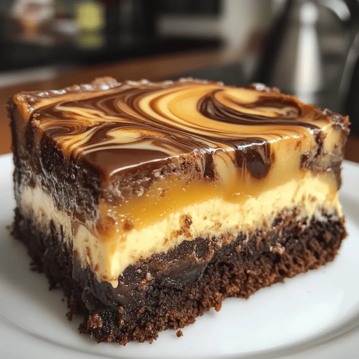 Decadent Layers: Each slice showcases a stunning assembly of fudgy brownie, rich cheesecake, and gooey caramel, creating a dessert that looks as good as it tastes.