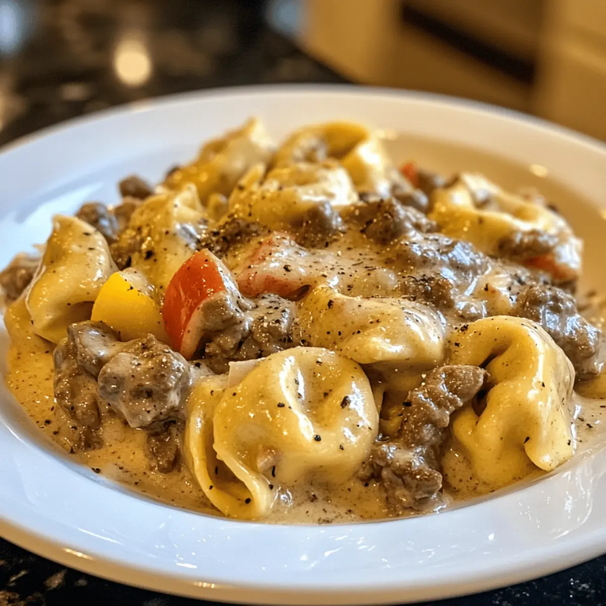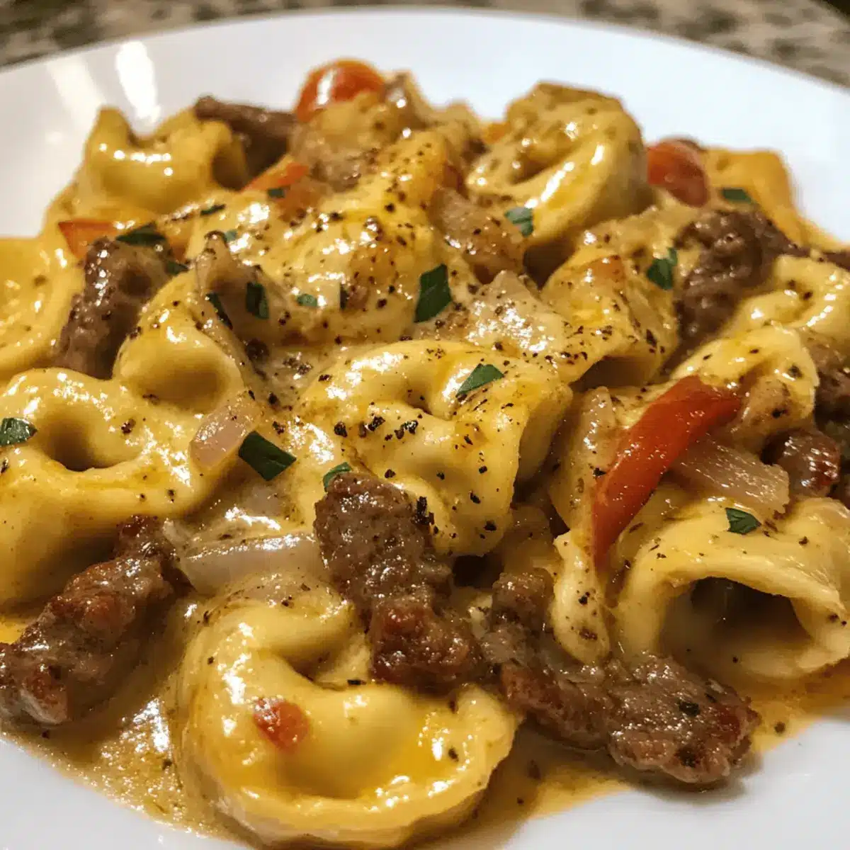 Cheesesteak Tortellini in Rich Provolone Sauce for Cozy Nights