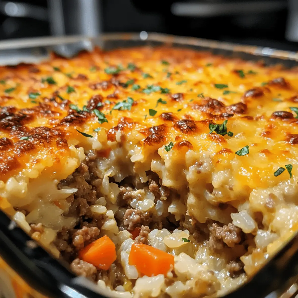 Unforgettable Comfort: This Cheesy Ground Beef and Rice Casserole delivers pure comfort food magic, enveloping you in a cozy embrace with every bite.