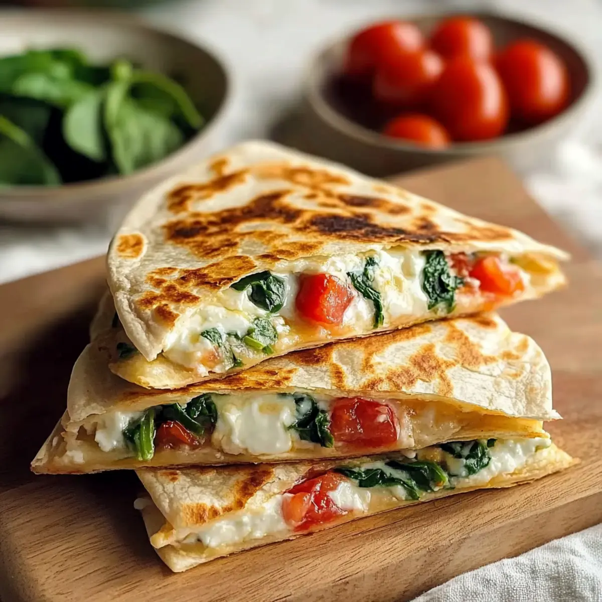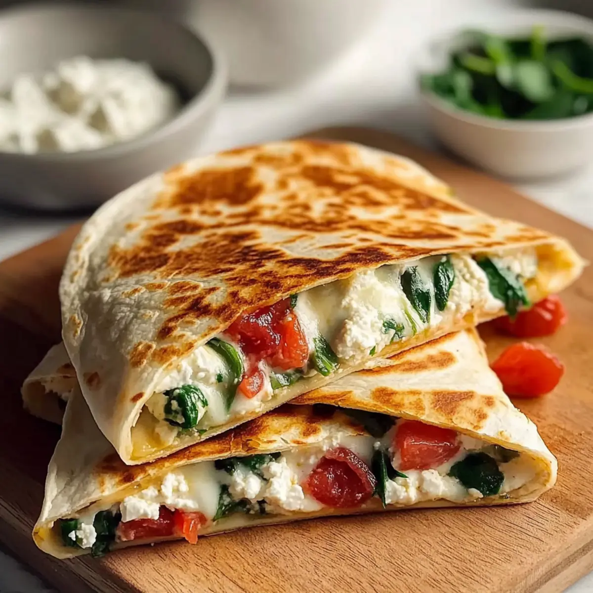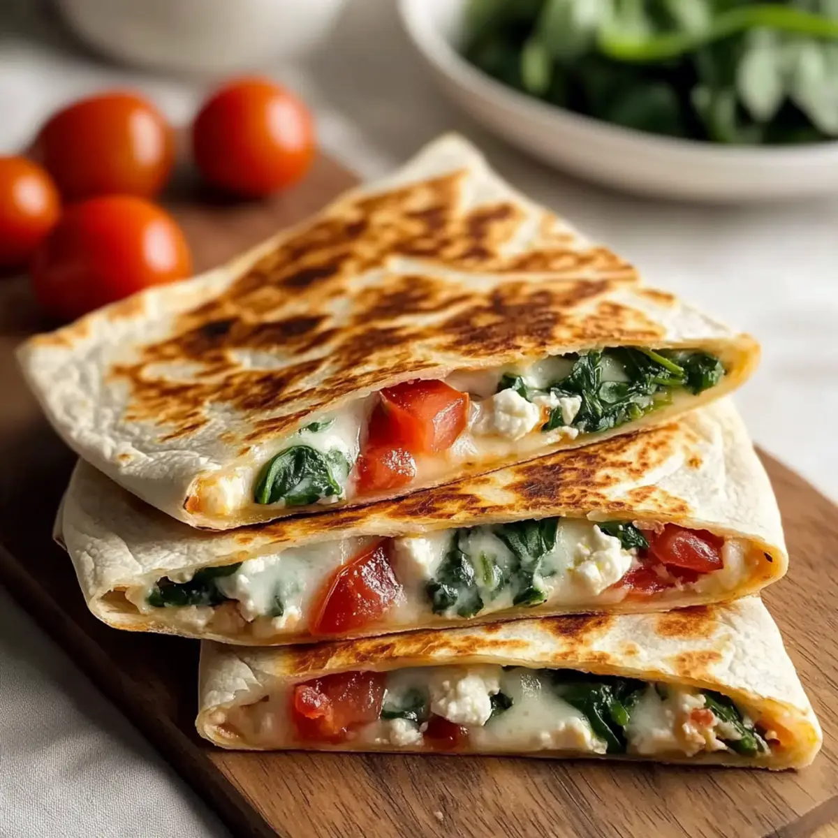 Great question! To prevent sogginess, ensure you pat the spinach dry and consider sautéing it briefly before adding it to your filling. After cooking, let the quesadillas rest for a minute to allow the melted cheese to set. This resting step also enhances the overall texture, making slicing easier.