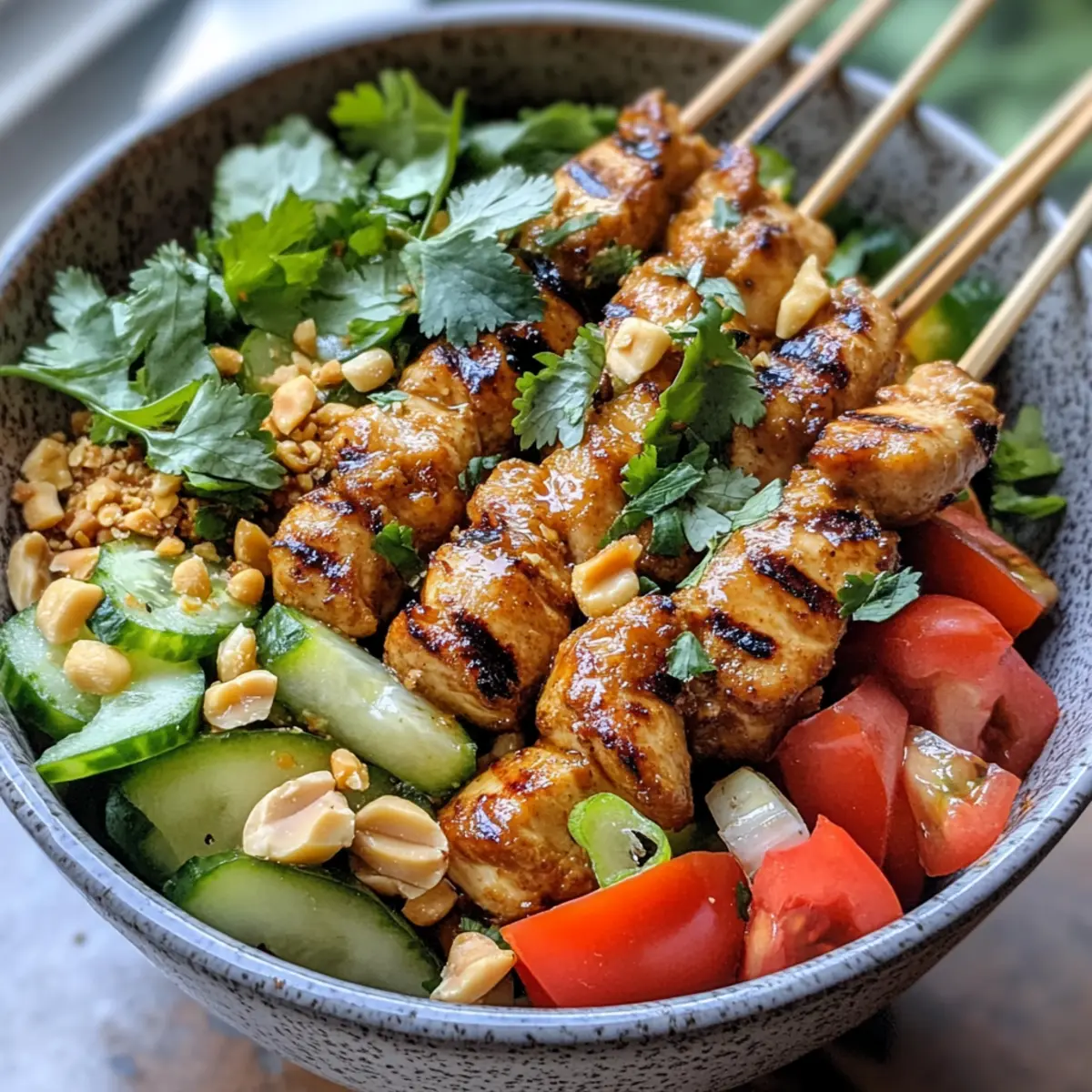 • Cilantro, lime juice, and chopped peanuts – Garnish for fresh flavor and added crunch, showcasing the Chicken Satay beautifully.
