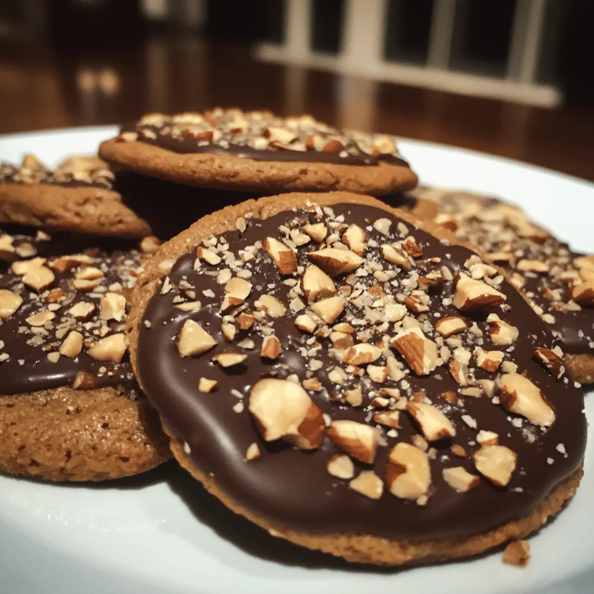 - Melt dark chocolate in a microwave-safe bowl. Dip cooled cookies, sprinkle hazelnuts on top, and let set.