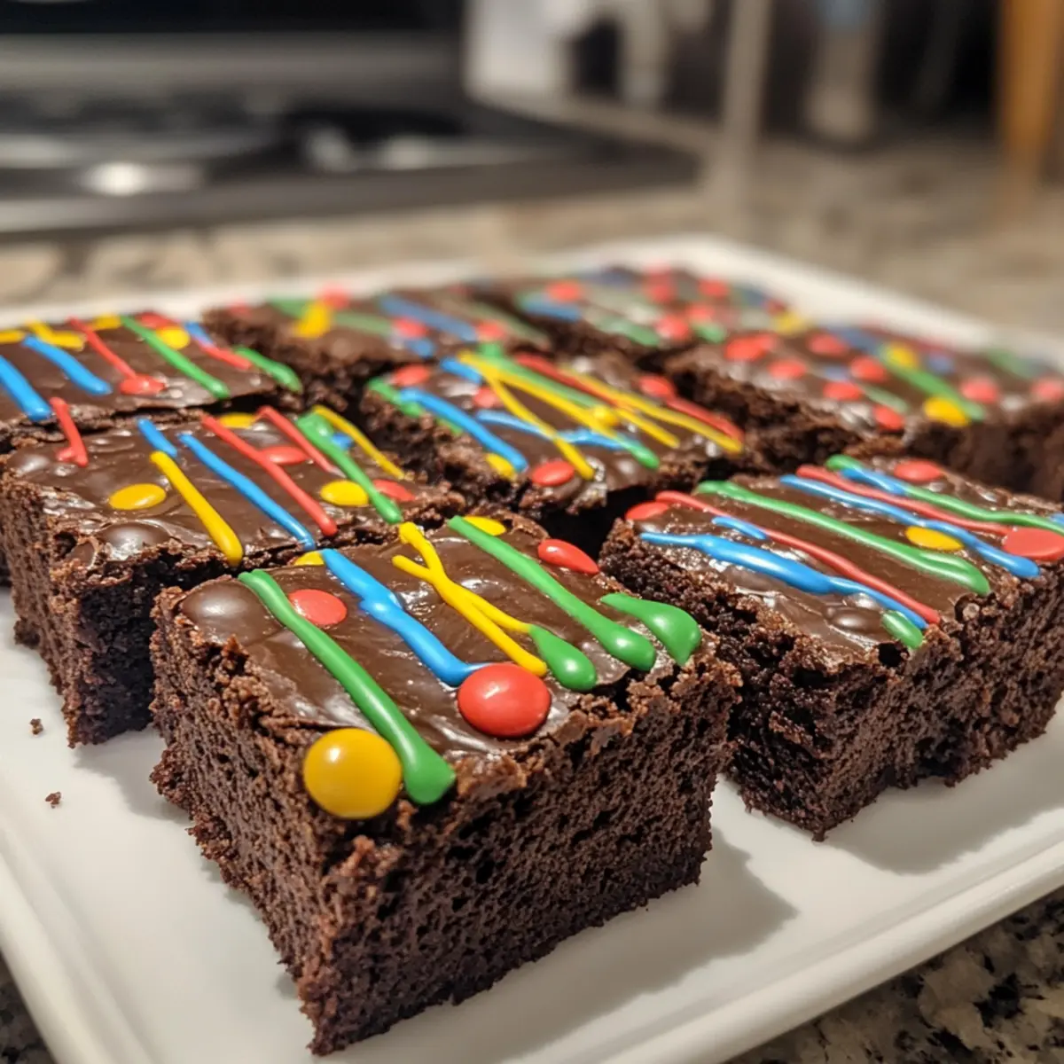 Once your brownies have cooled, cut them into squares. Melt your choice of colored candy melts—red, green, or white—and drizzle them over the squares to mimic ribbons wrapping a present. You can also enhance the look with mini candy bows and festive sprinkles, transforming your brownies into delightful holiday treats.