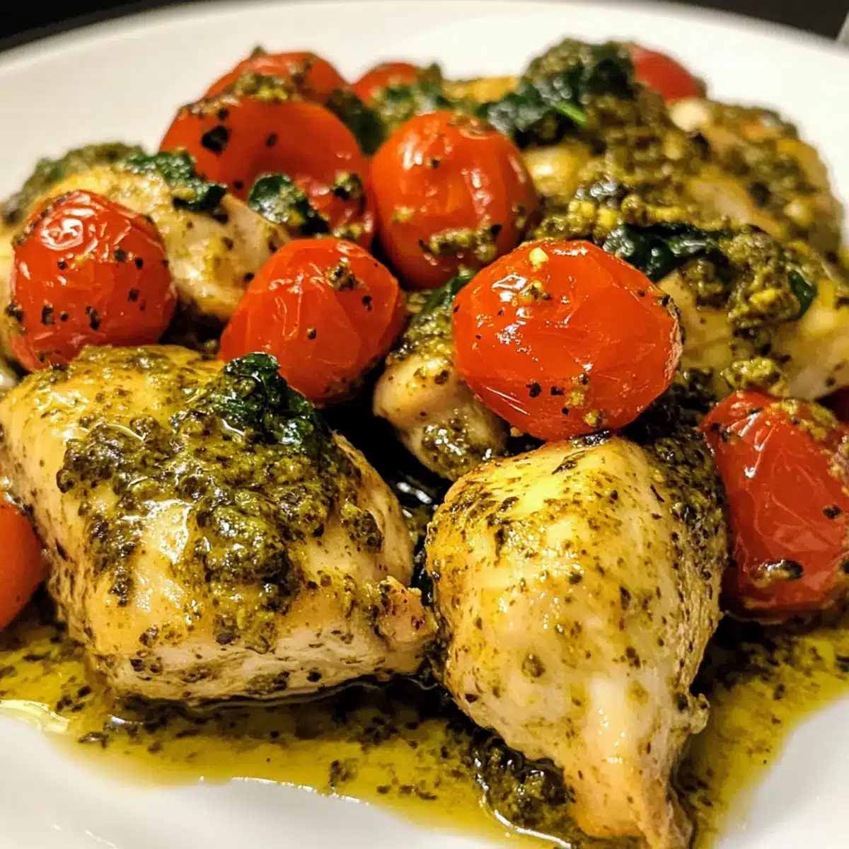 Creamy Pesto Chicken with Roasted Tomatoes for a Quick Feast