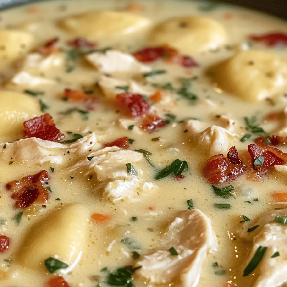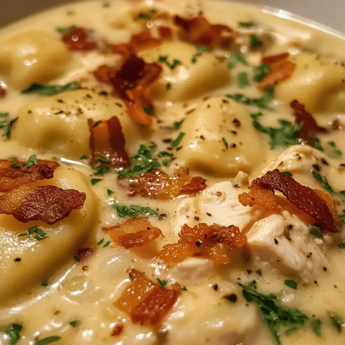 Creamy Pierogi Chicken Soup with Rosemary Bacon Bliss
