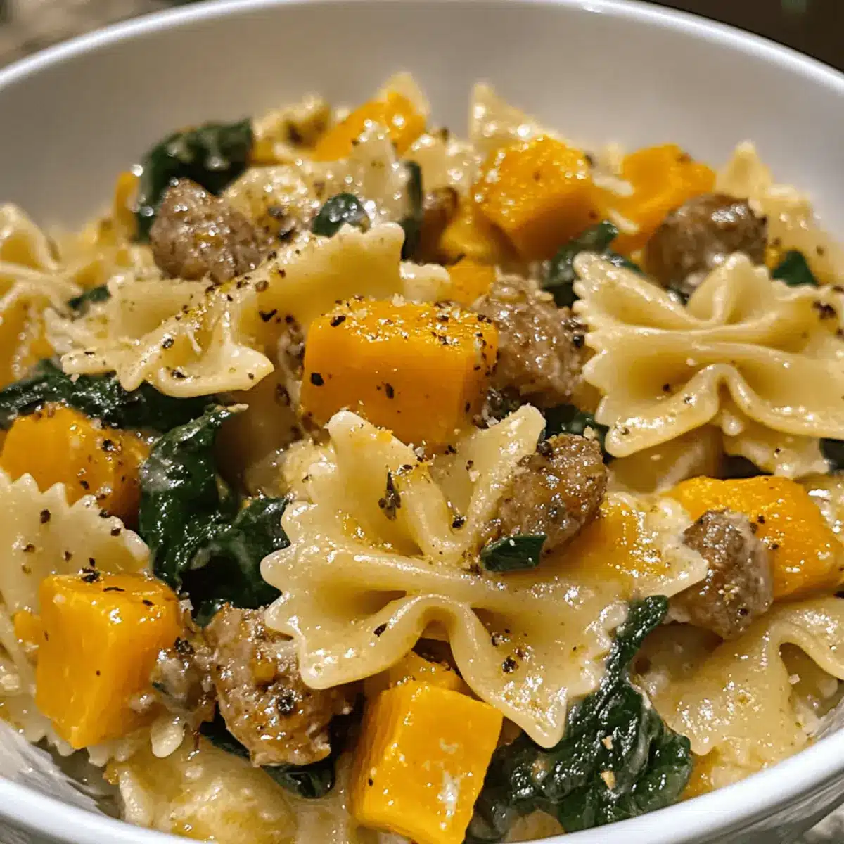 Creamy Roasted Butternut Squash Pasta with Sausage and Spinach Bliss