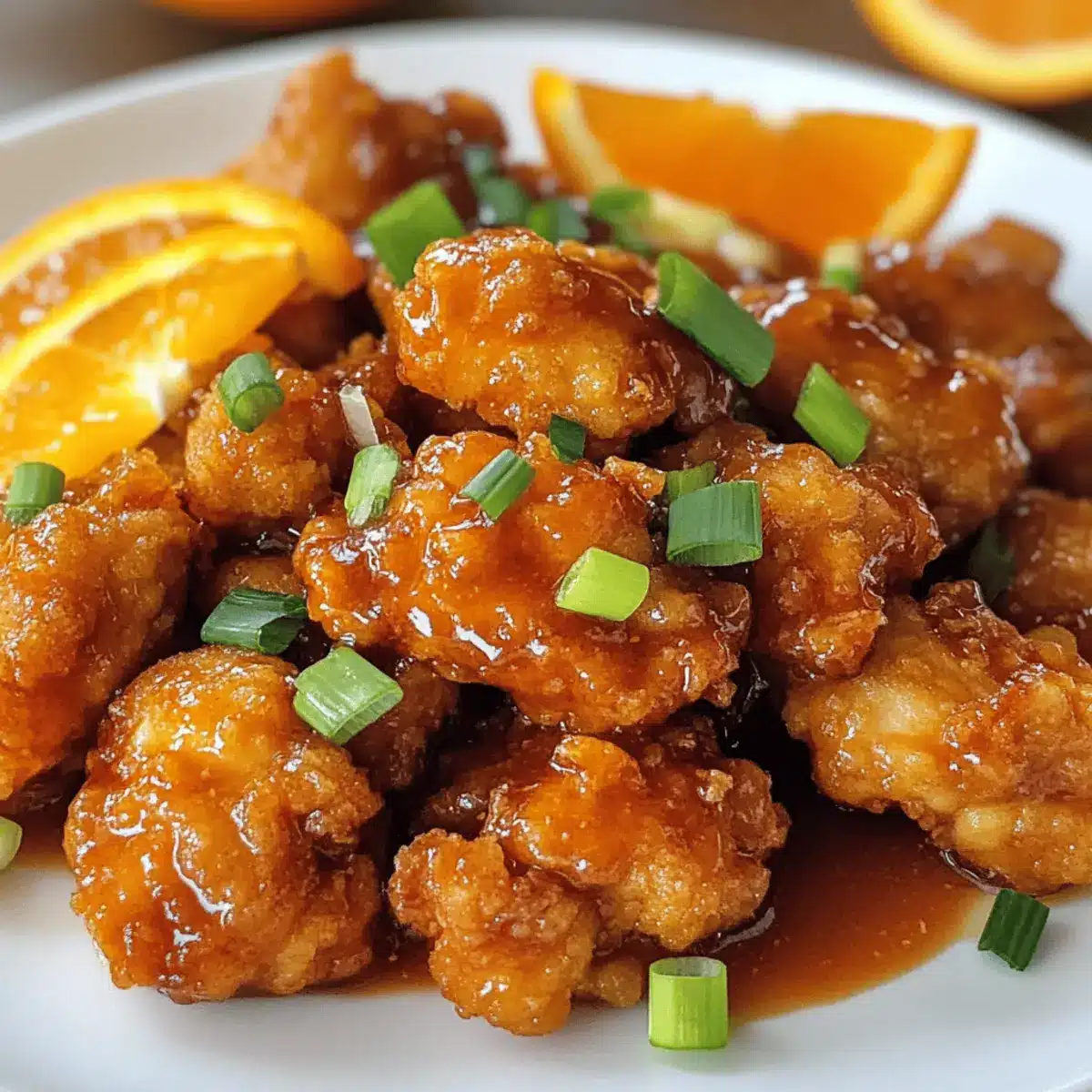 Preparing Crispy Orange Chicken ahead of time is a fantastic way to save precious minutes during busy weeknights! You can marinate the chicken in a mixture of soy sauce, garlic, and ginger up to 24 hours in advance for enhanced flavor. Additionally, the breaded chicken can be prepped and stored in a single layer in the refrigerator for up to 3 days; just make sure to cover it to prevent drying out. When you’re ready to enjoy this delicious meal, simply heat your oil and fry the chicken until golden brown and crispy, then toss it in the vibrant orange sauce. With these make-ahead options, dinner becomes effortless and just as delicious!