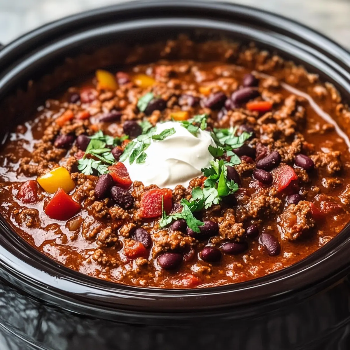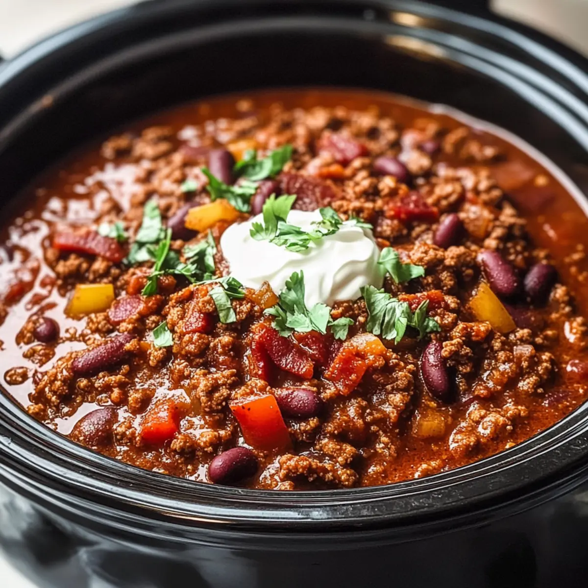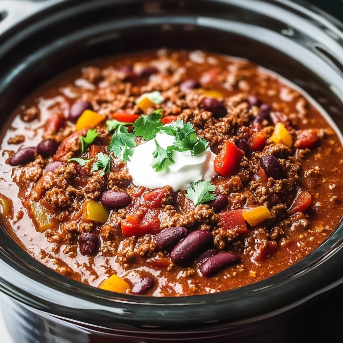 Ladle the ultimate Crockpot Chili into bowls and garnish with your favorite toppings, such as sour cream, shredded cheddar cheese, or fresh cilantro. This warm and inviting dish is perfect for sharing, so gather your loved ones and enjoy the comforting flavors of your homemade chili!