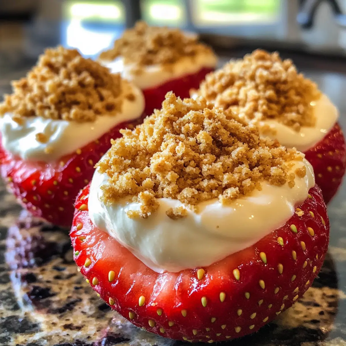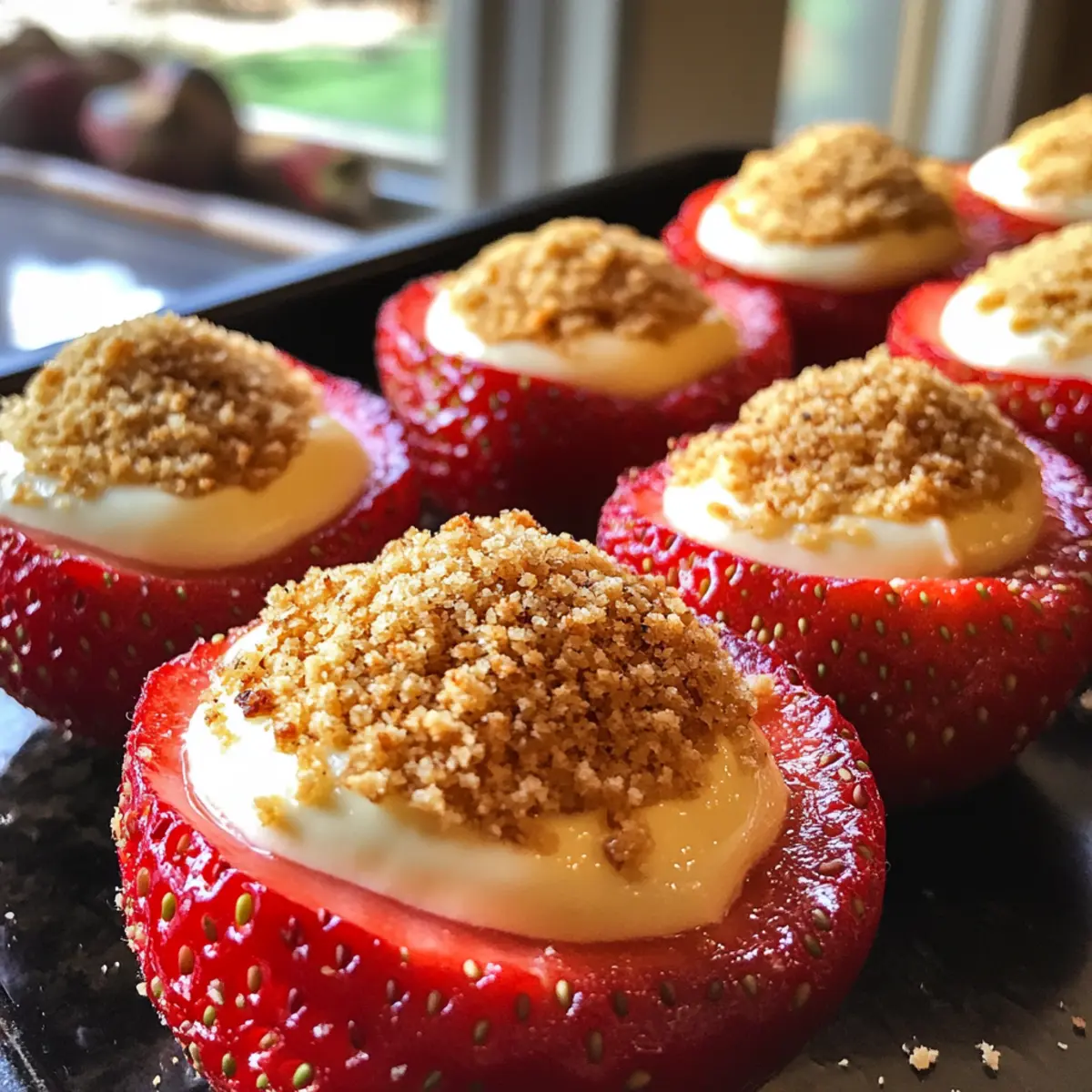 - Sprinkle graham cracker crumbs over filled strawberries and serve immediately or refrigerate briefly.