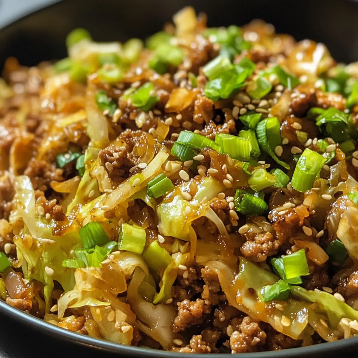 Remove the skillet from heat, and garnish the dish with minced green onions and a sprinkle of sesame seeds. The vibrant colors should pop, making your Egg Roll in a Bowl visually appealing. Serve it hot in bowls, adding an extra layer of warmth and inviting aroma—too delicious to resist!