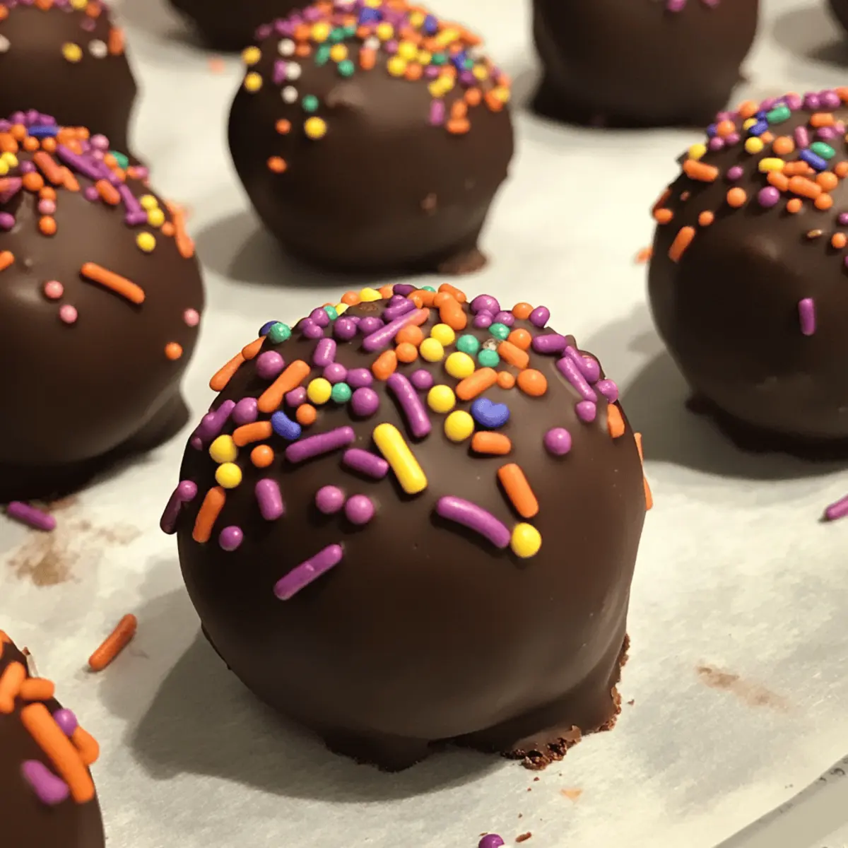 While the chocolate coating is still wet, sprinkle your desired festive toppings generously over each ball. Choose colorful sprinkles to match the Halloween theme, adding an extra layer of fun and excitement. This step transforms your Halloween Oreo Balls into delightful festive treats.