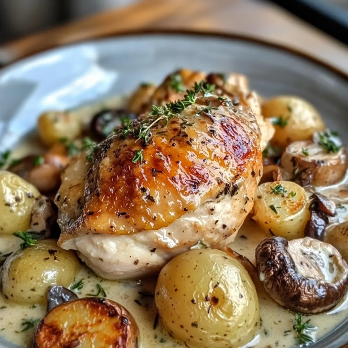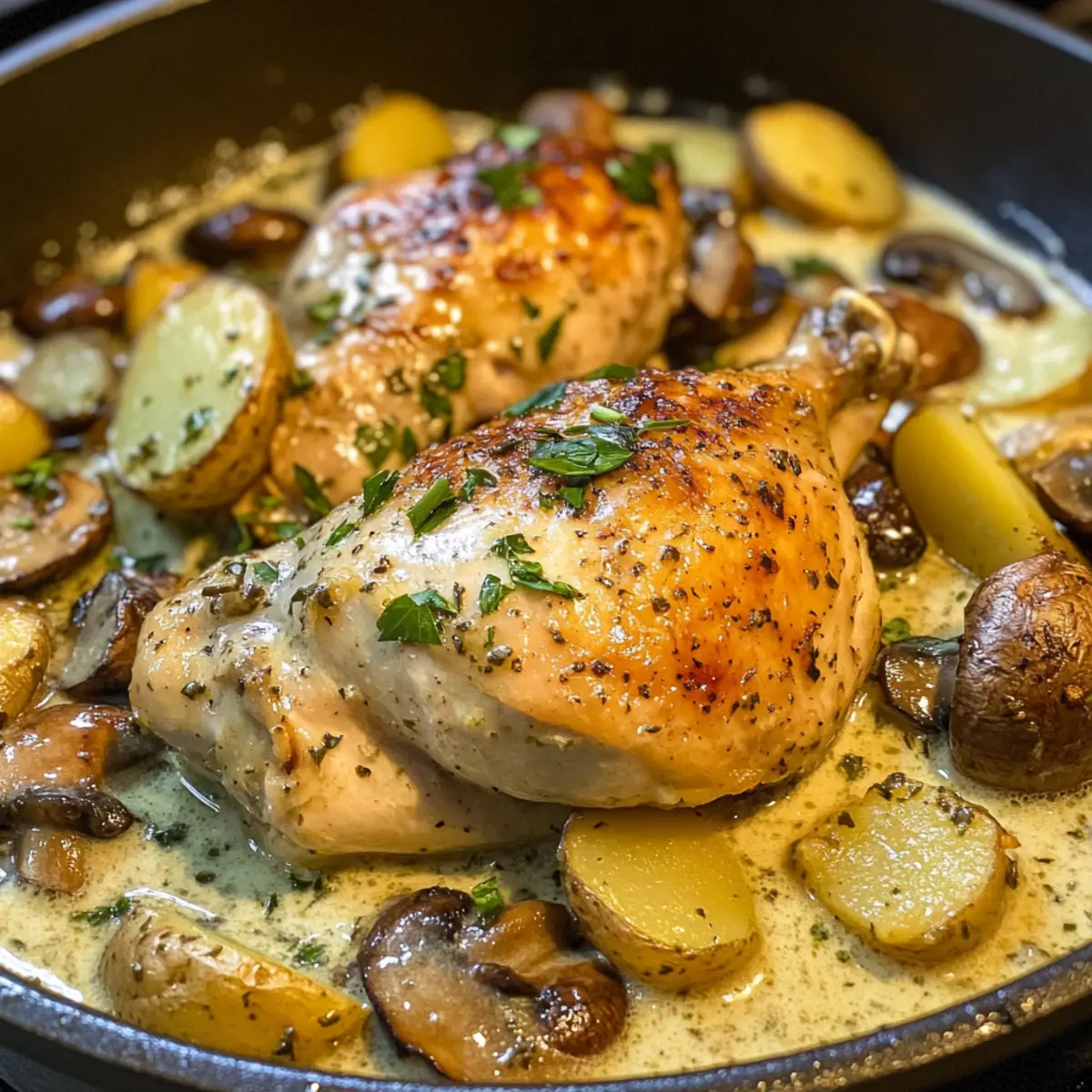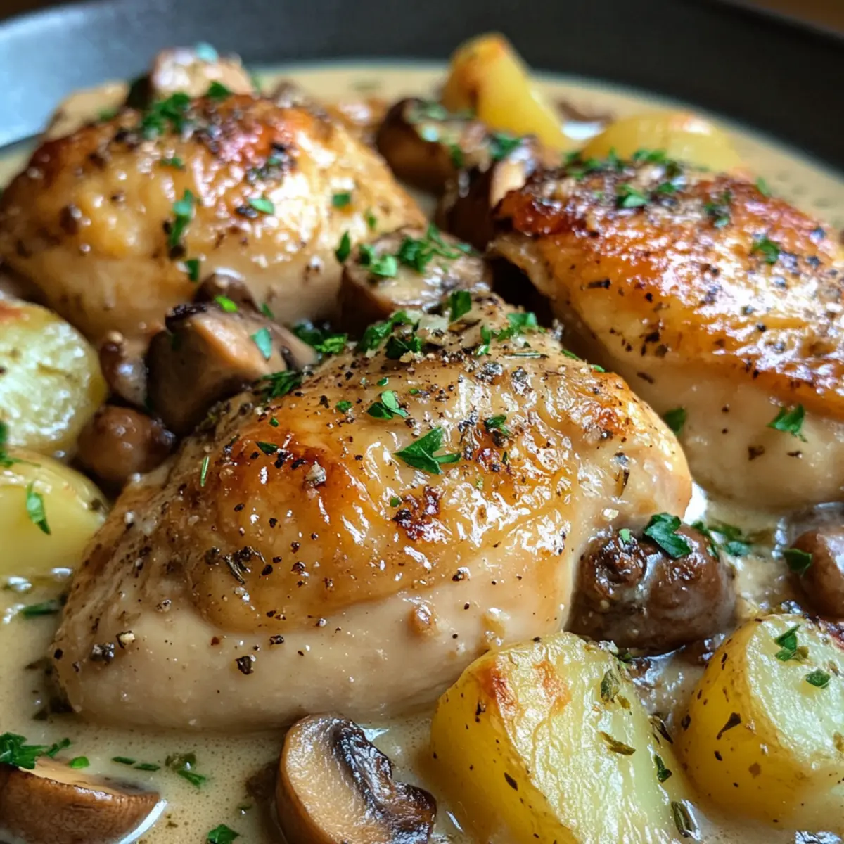 Satisfying texture: Enjoy perfectly roasted chicken nestled in creamy sauce, complemented by tender potatoes—providing a comforting hug in every bite!