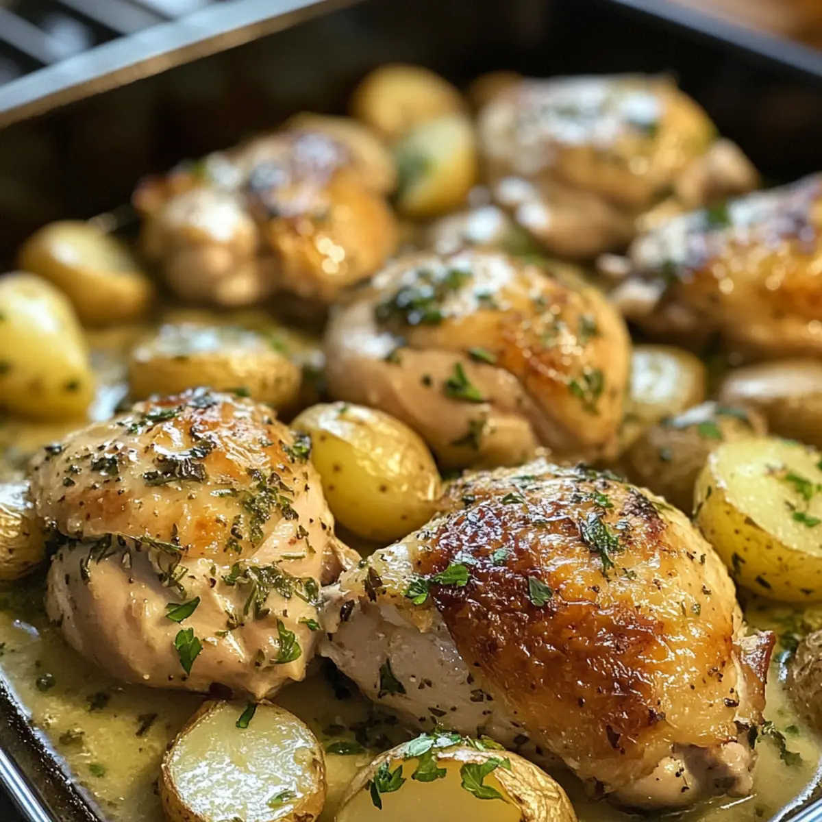 Add 1 pound of halved baby potatoes into the sauce, then return the browned chicken pieces back to the pot. Ensure the chicken is well coated in the sauce and potatoes are nestled around it. This harmonious blending of flavors is essential for your Herb Roasted Chicken in Creamy White Wine Sauce!