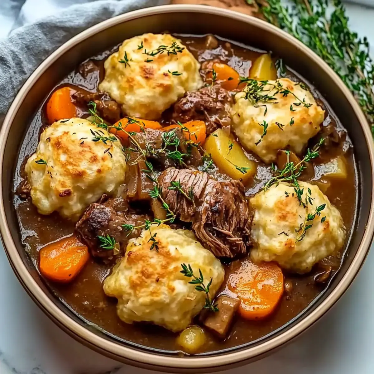 Fluffy cheddar dumplings: These delightful accompaniments soak up the savory broth, offering a perfect balance of textures that takes this dish to the next level.