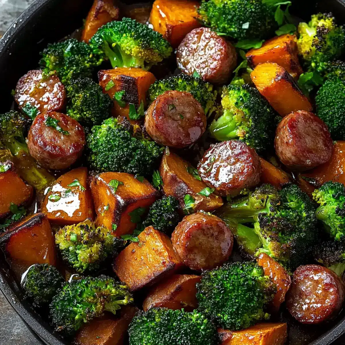 Vegetable Swap: Feel free to explore different vegetables like bell peppers or Brussels sprouts; just ensure they are cut similarly in size to ensure even cooking alongside the sausage and sweet potatoes.