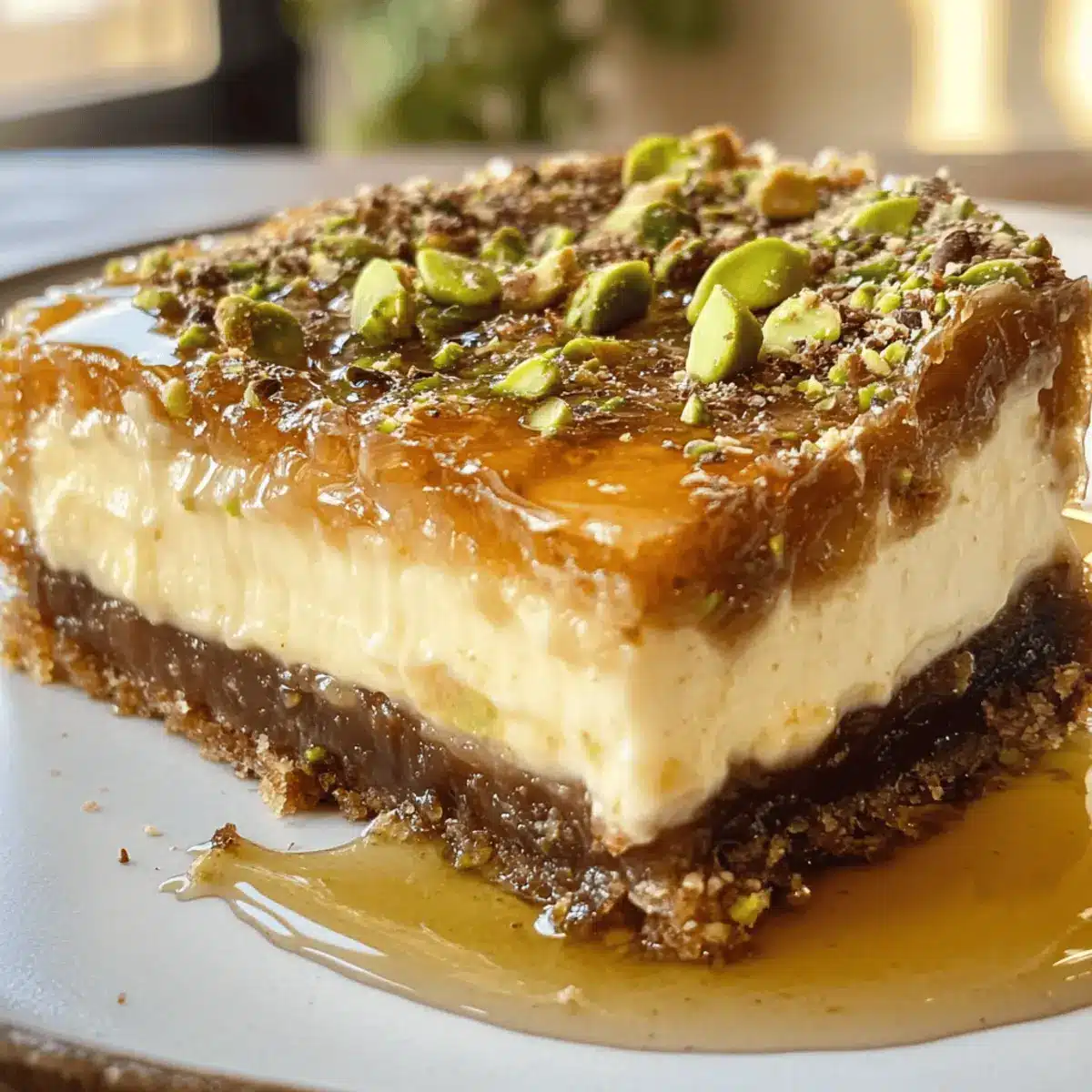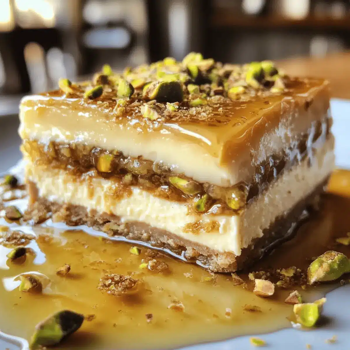 Storage Secrets: Store leftovers in an airtight container in the fridge to maintain the crispy layers of your Honey Pistachio Baklava Cheesecake for up to three days.