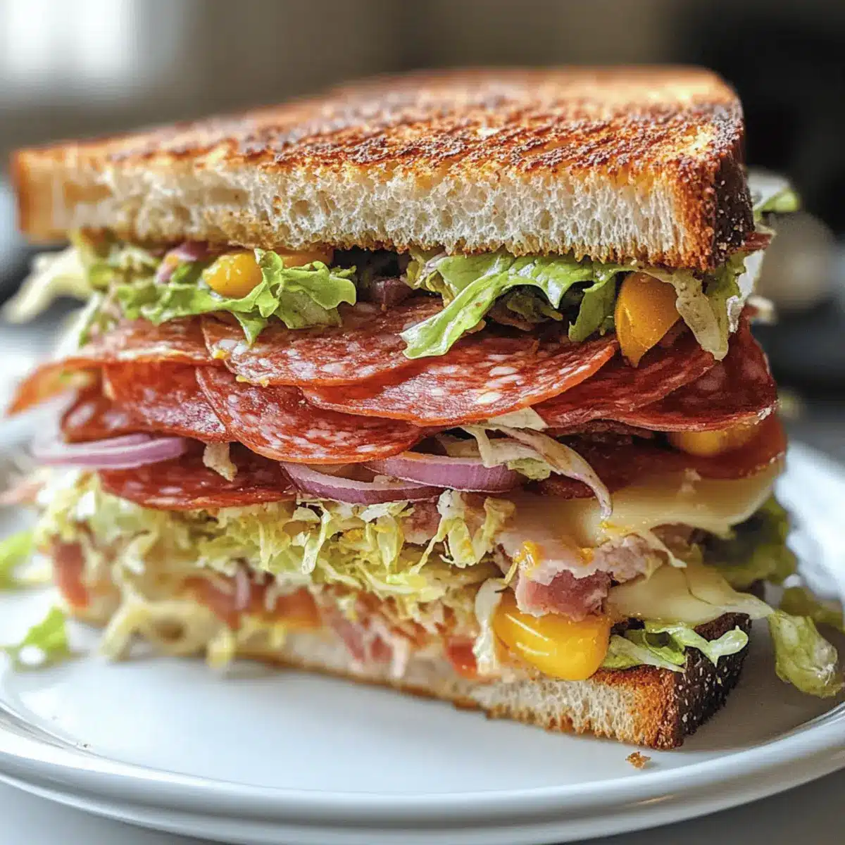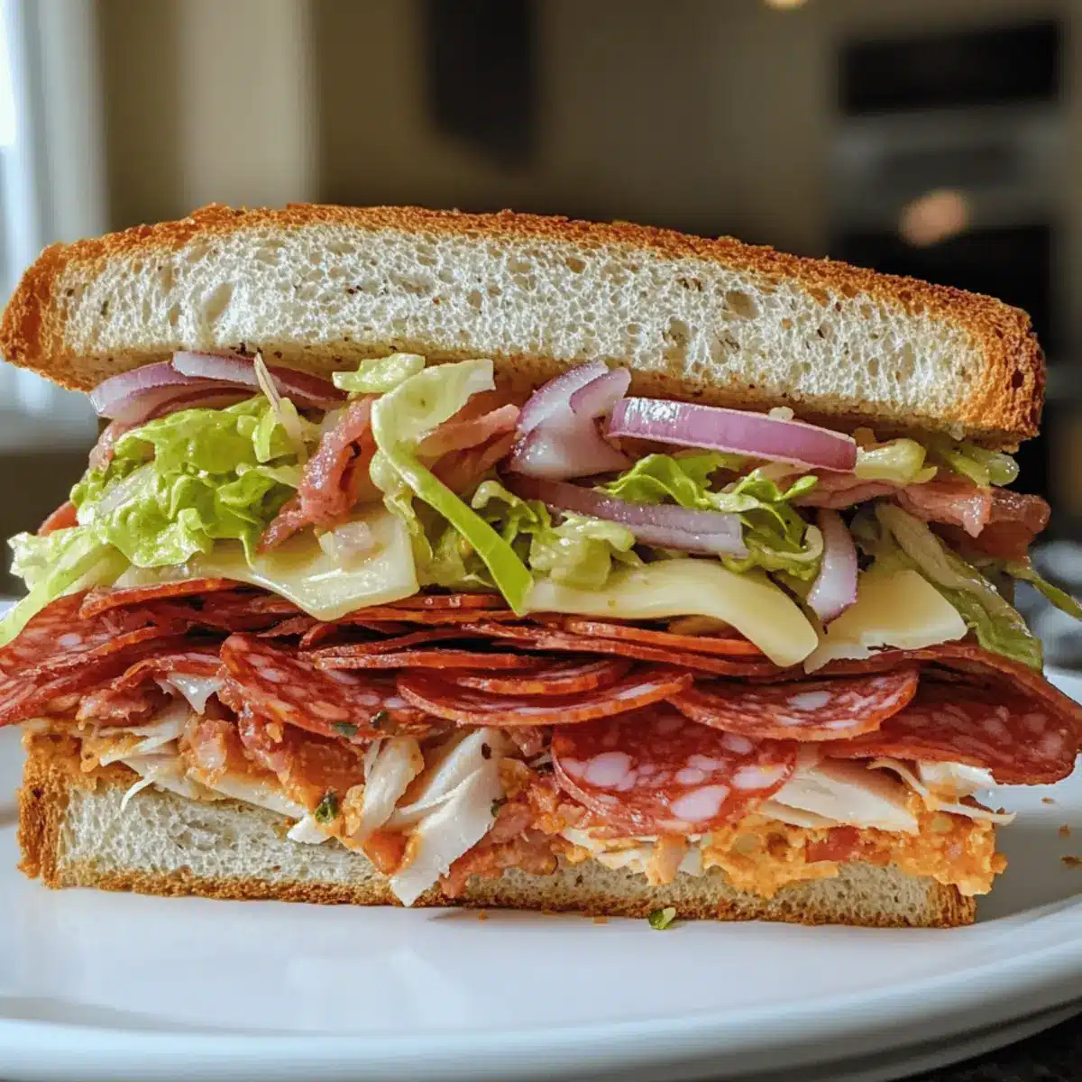 Absolutely! This sandwich is perfect for customization. Swap out meats according to your family’s preferences—try roast beef, turkey, or even a combination. You can also experiment with different cheeses like mozzarella or cheddar, and feel free to add toppings such as pickles or cucumbers for that extra crunch! The more the merrier when it comes to flavor!