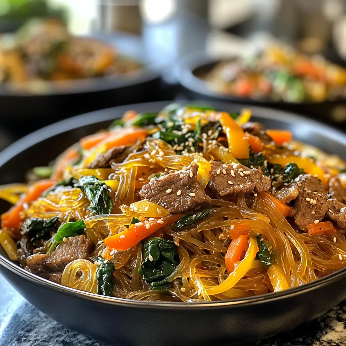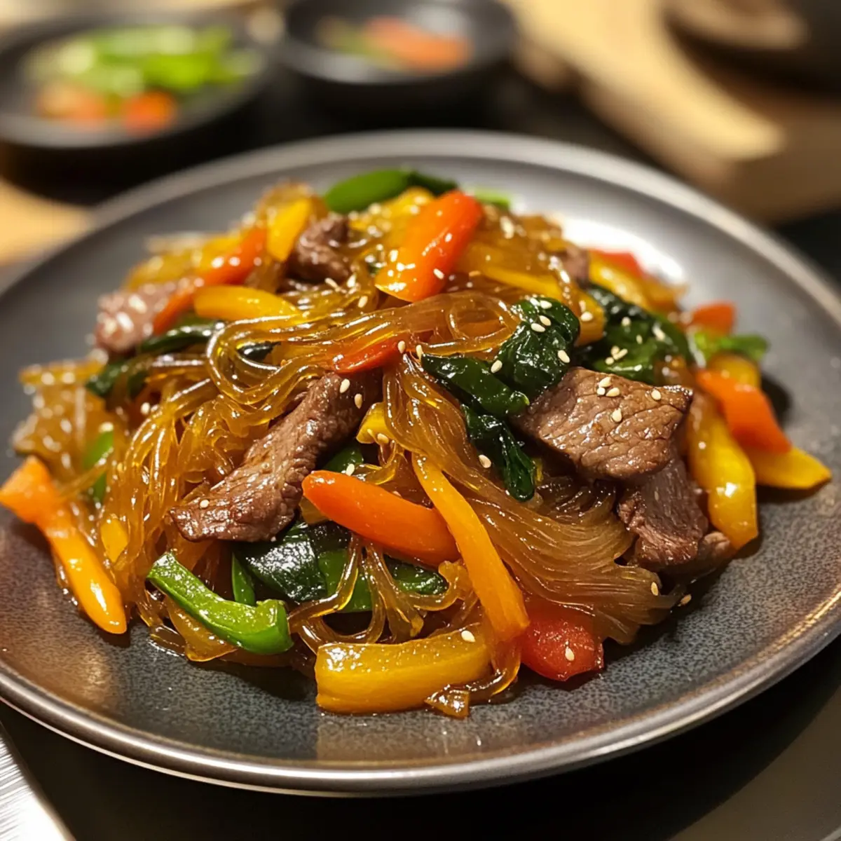 Savory Japchae: Delight in Chewy Sweet Potato Noodles