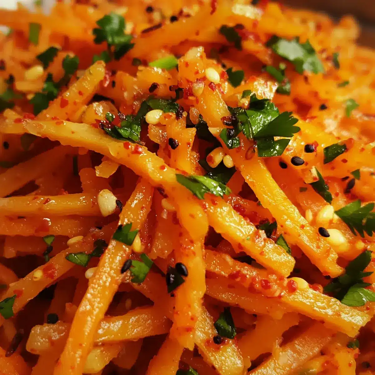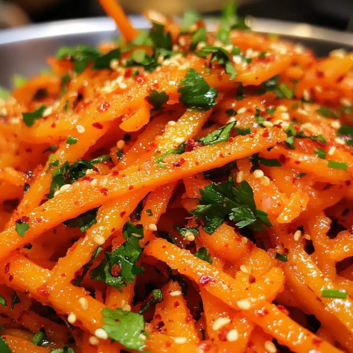 • Fresh Herbs: Use fresh herbs like cilantro or green onions for the best flavor. They not only add a vibrant color but also elevate the overall taste of your Korean Carrot Salad.