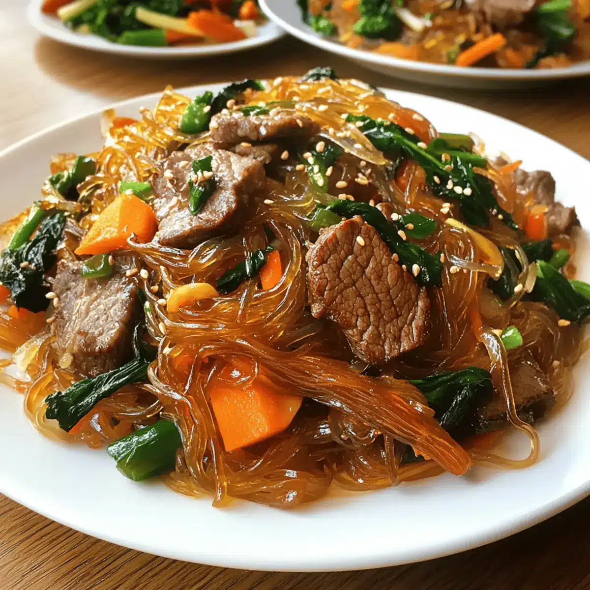 For a lovely finish, consider serving Mango Sticky Rice. Its creamy sweetness pairs wonderfully with the savory flavors of the noodles, rounding out your meal with a touch of tropical bliss. Another fantastic option is Chilled Soba Noodles drizzled with sesame sauce, offering a cool, nutty touch that complements the warm, savory stir-fry perfectly. Enjoy crafting your perfect meal around this delightful Korean Japchae!