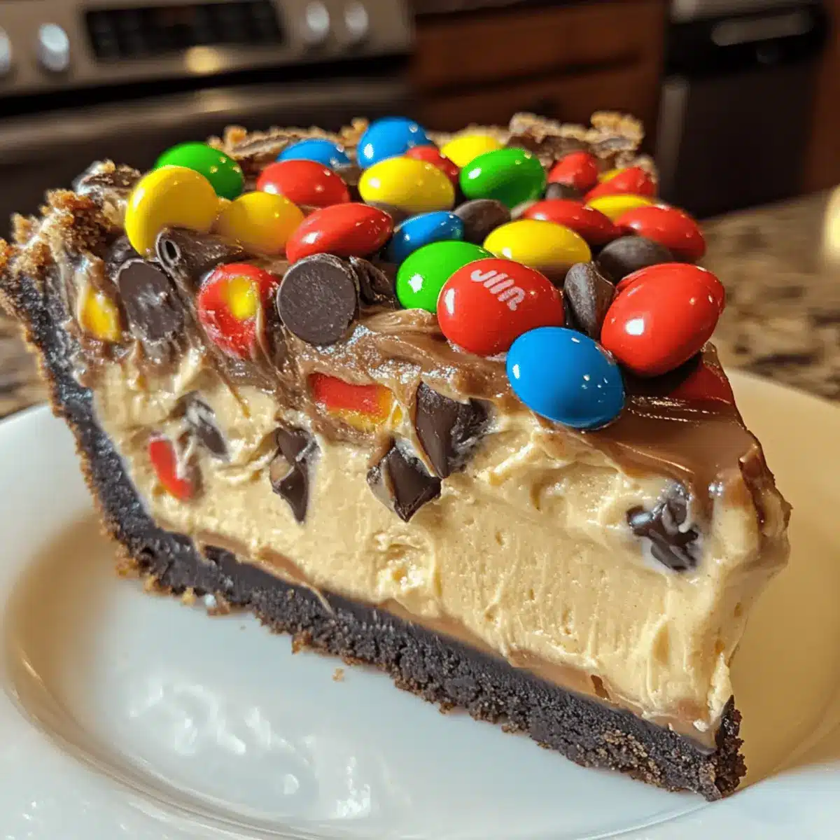 When ready to serve, slice the pie with a sharp knife for clean edges. This decadent Monster Cookie Peanut Butter Cheesecake Pie is best enjoyed chilled, so keep it in the fridge until it’s time to dig in. Each slice is a delightful combination of textures and flavors, perfect for family gatherings or a sweet treat at home!