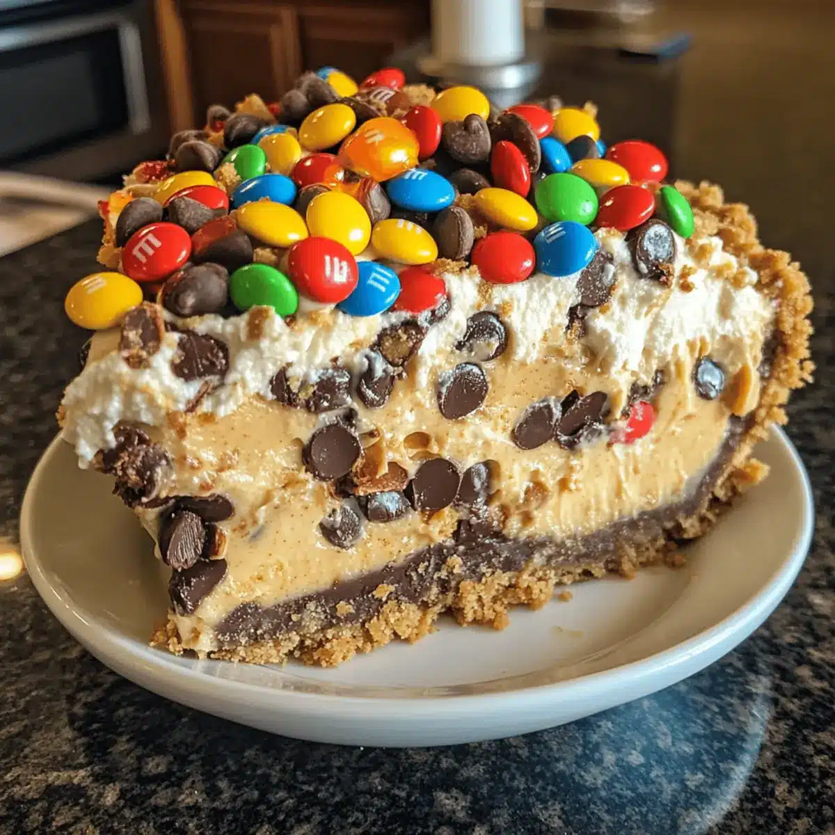 Decadent Monster Cookie Peanut Butter Cheesecake Pie Delight