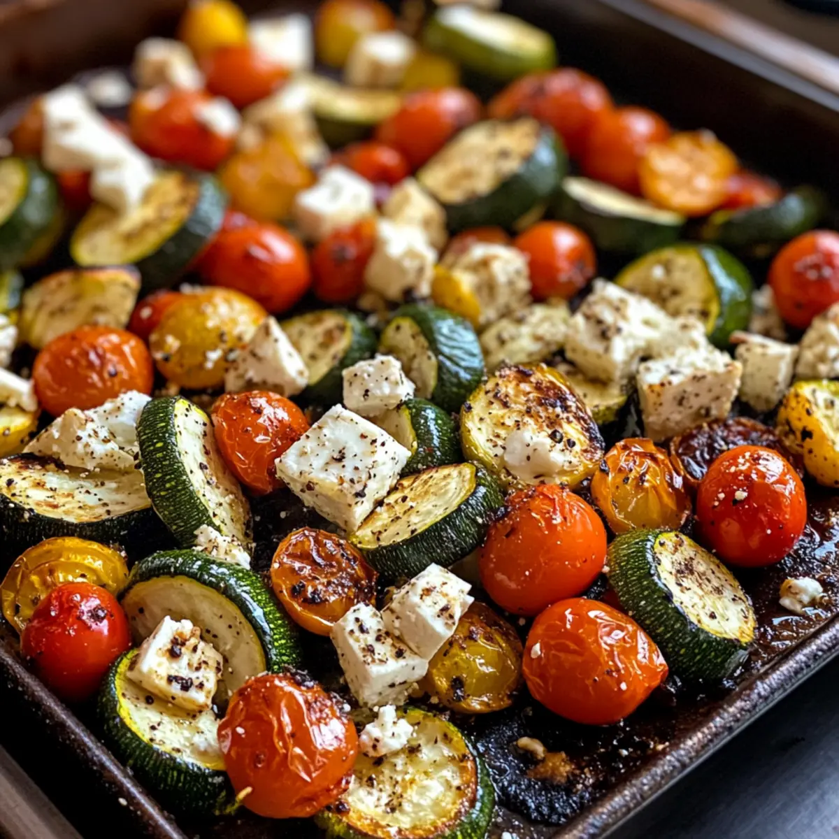 Once roasted, carefully remove the pan from the oven. Sprinkle crumbled feta cheese over the hot vegetables, allowing it to soften slightly without melting completely. The feta adds a delightful tanginess to your One Pan Greek Vegetables, elevating this dish to a creamy, flavor-packed experience.
