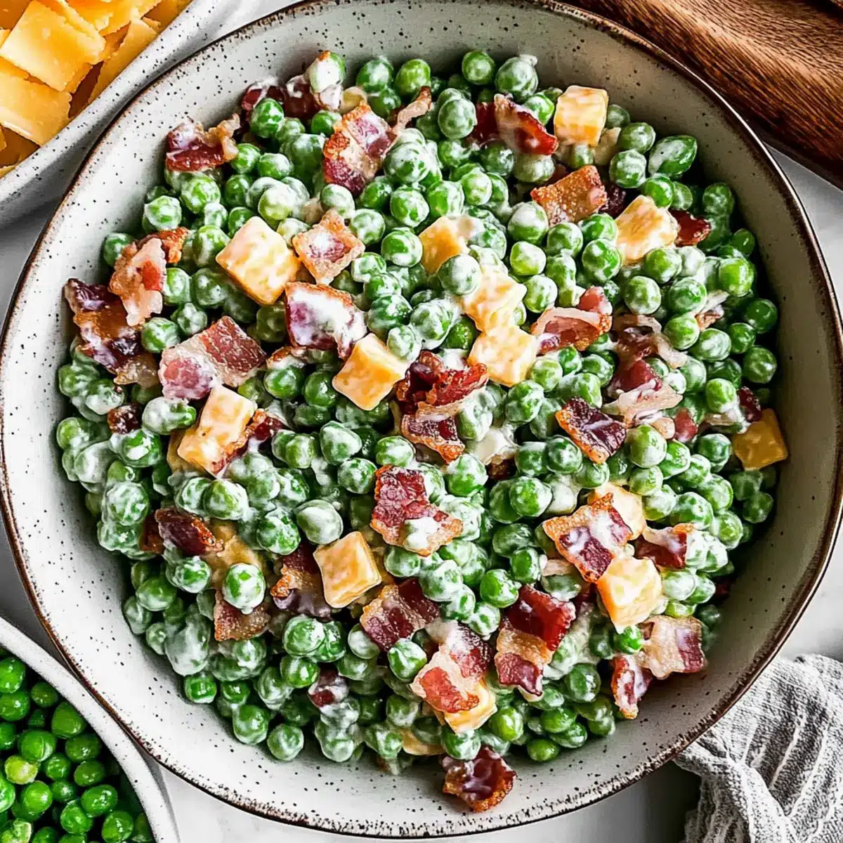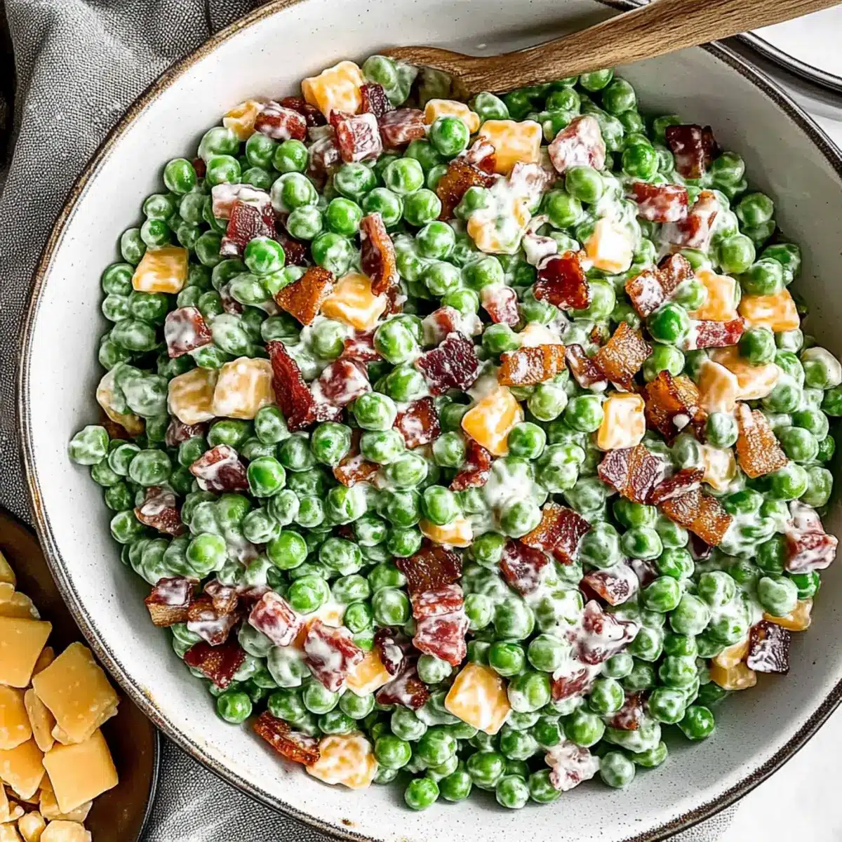 Slipping into the breeze of a sunny spring day, I found myself craving something light yet satisfying—a dish that would perfectly accompany an afternoon picnic with friends. Enter, the Creamy Pea Salad! With its cheerful combination of sweet peas, crunchy bacon, and a tangy dressing, this dish is not just delightful; it is incredibly customizable, making it a star at any potluck gathering. The best part? It’s a breeze to prepare ahead of time, urging you to spend less time in the kitchen and more time enjoying good company. This creamy salad is your ticket to instant nostalgia, hearkening back to family get-togethers and sunny picnics. Are you ready to whip up a vibrant dish that pleases every palate? Let’s dive into the details!