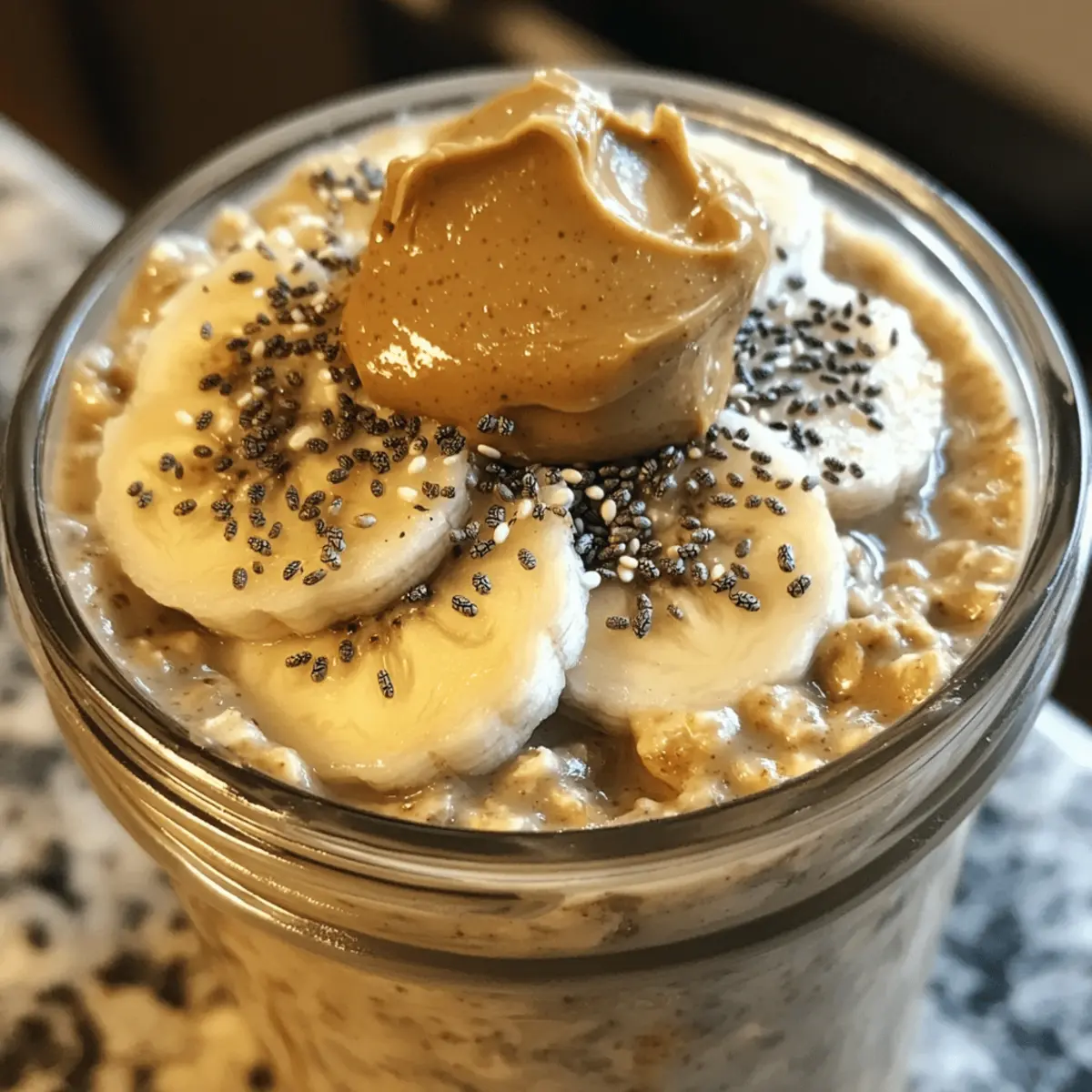 These Easy Vegan Peanut Butter Banana Overnight Oats are perfect for busy home cooks looking to save time! You can prepare the oat mixture up to 3 days in advance by combining the oats, chia seeds, milk, and peanut butter. Simply store it in airtight containers in the refrigerator. To maintain quality, add the sliced banana just before serving to prevent browning. When you’re ready to enjoy, simply stir the mixture, adding a little extra milk if needed to reach your desired consistency, and top it with fresh fruits or nuts for a delightful crunch. With this prep, you’ll have a nutritious, ready-to-eat breakfast that fits seamlessly into your hectic mornings!