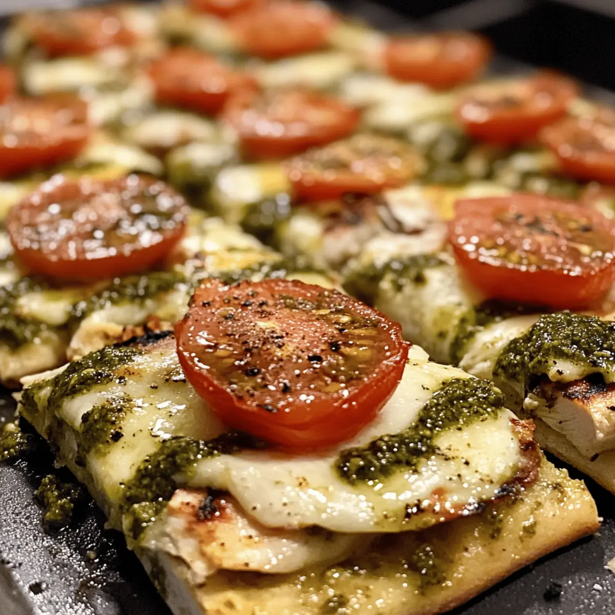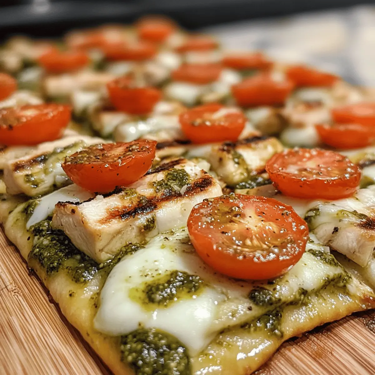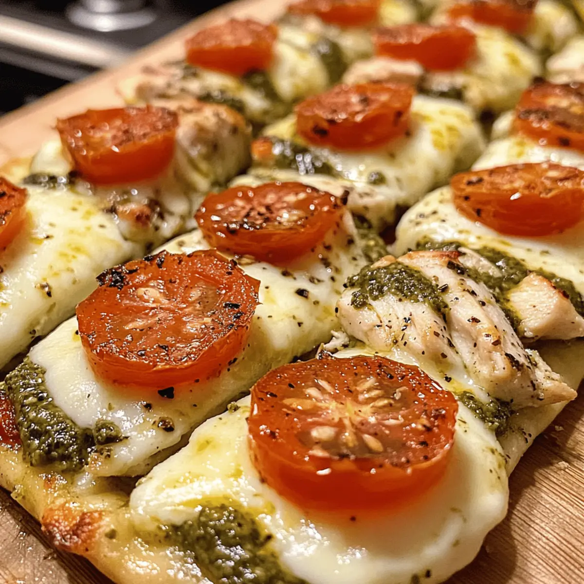 Preparing your Pesto Chicken Flatbread ahead of time is a fantastic way to save precious moments during busy weeknights! You can grill and slice the chicken up to 3 days in advance; just store it in an airtight container in the refrigerator to retain its tenderness. Additionally, you can prepare the flatbreads with pesto and cheese topped in advance and keep them wrapped tightly in plastic wrap in the fridge for up to 24 hours. When you’re ready to enjoy, simply bake the assembled flatbreads at 400°F (200°C) for about 10-12 minutes, or until the cheese is melted and bubbly. With these make-ahead tips, you’ll delight in a warm, satisfying meal without the last-minute rush!