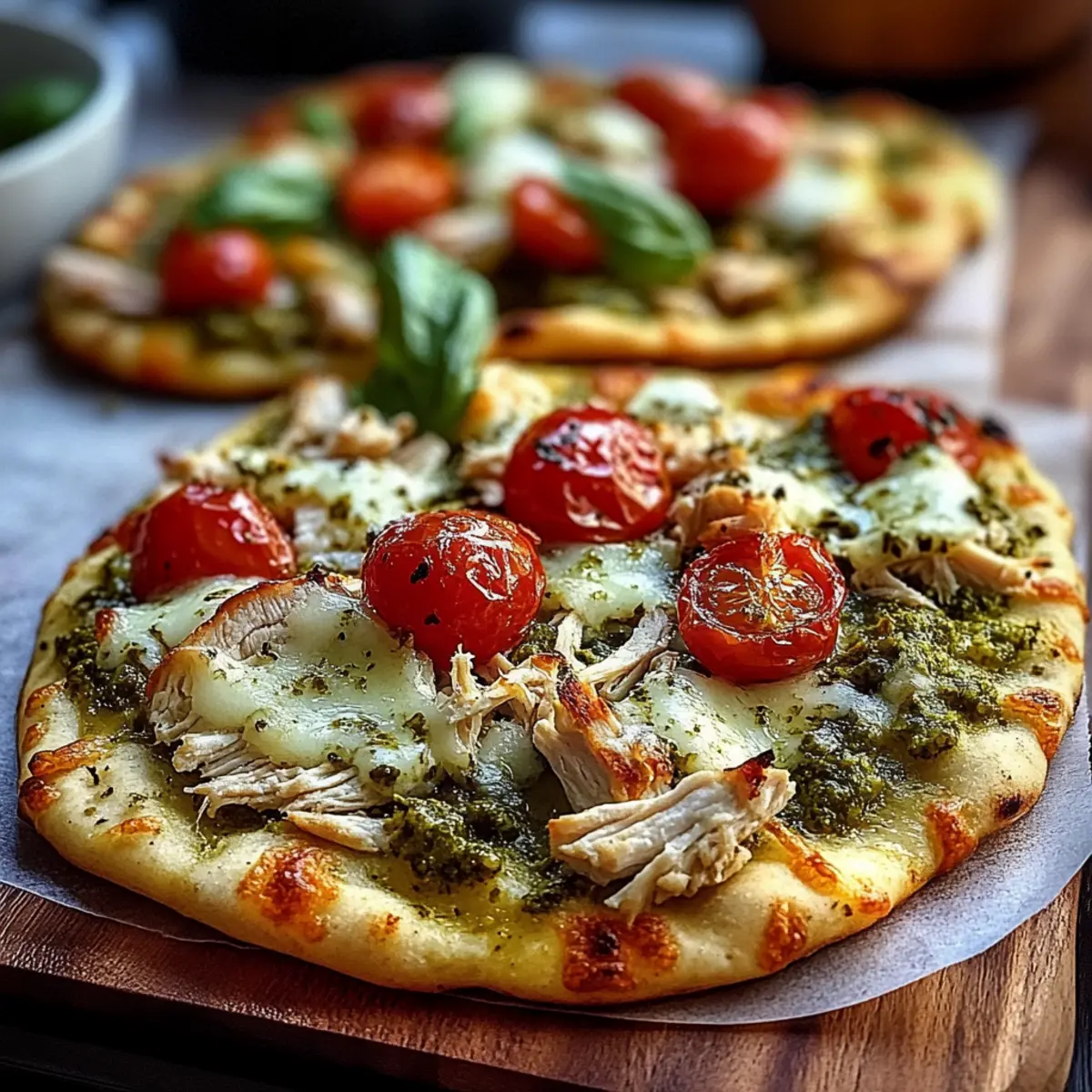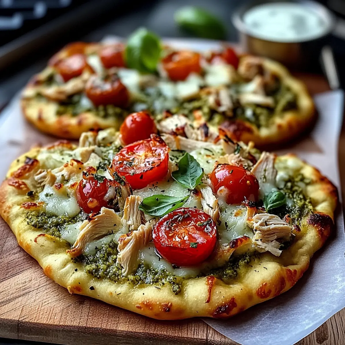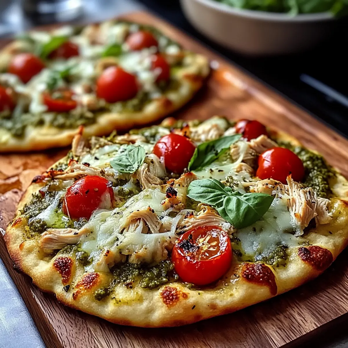 Savory Pesto Chicken Flatbread with Mozzarella in 25 Minutes