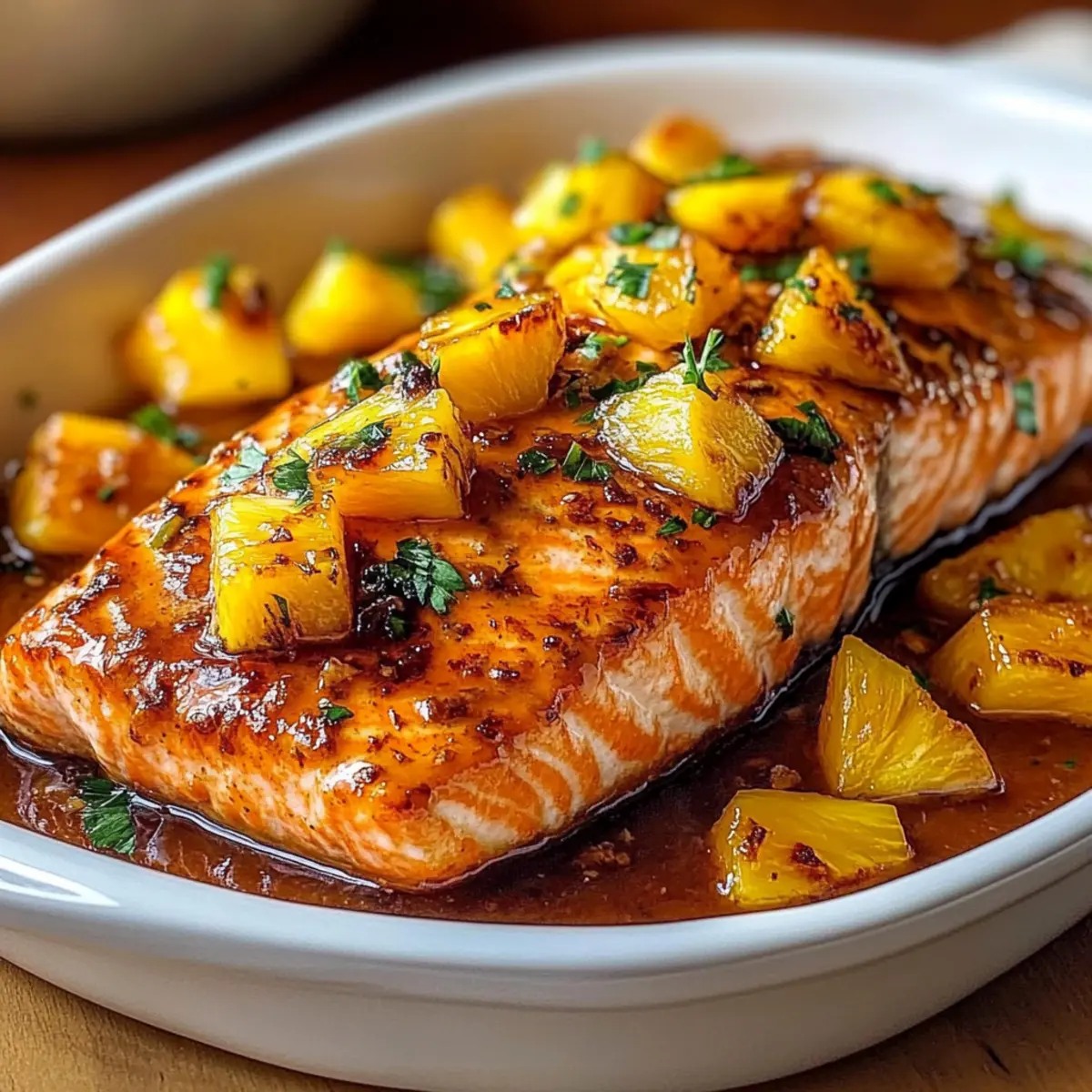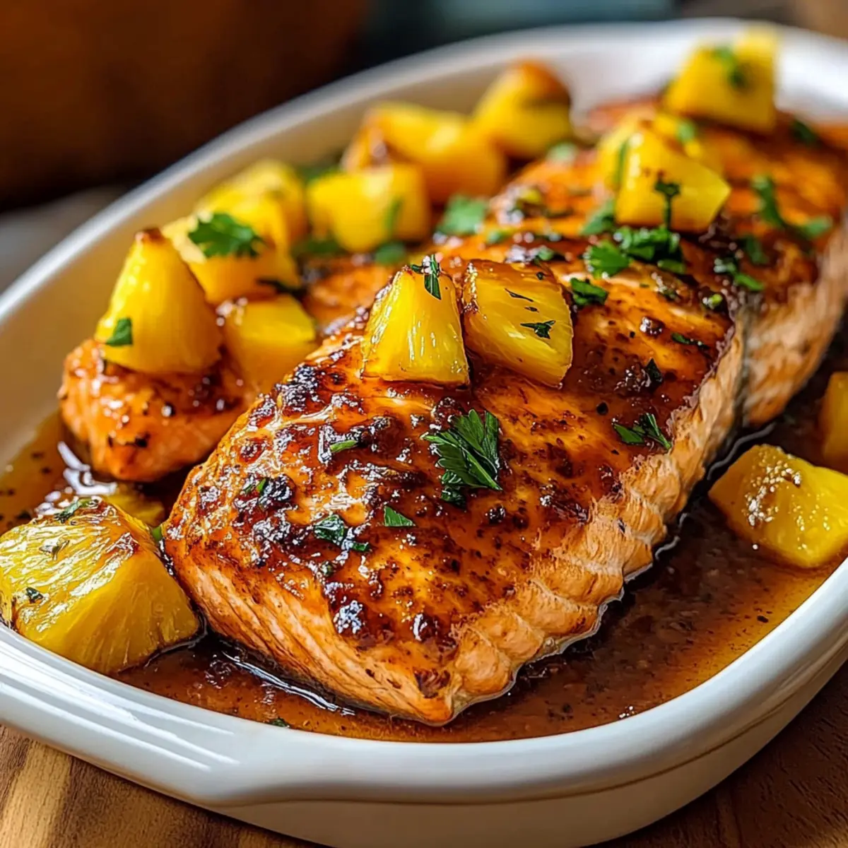 Juicy, Flavorful Delight: This dish combines the buttery richness of salmon with a mouthwatering pineapple glaze that balances sweetness and acidity perfectly.