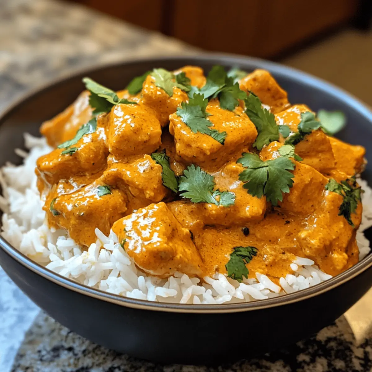 - Serve and garnish: Serve warm Pumpkin Butter Chicken over basmati rice or with naan, garnished with fresh cilantro.
