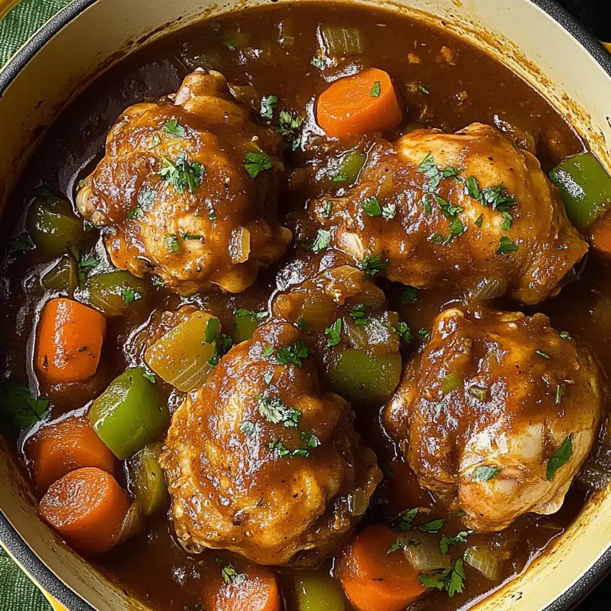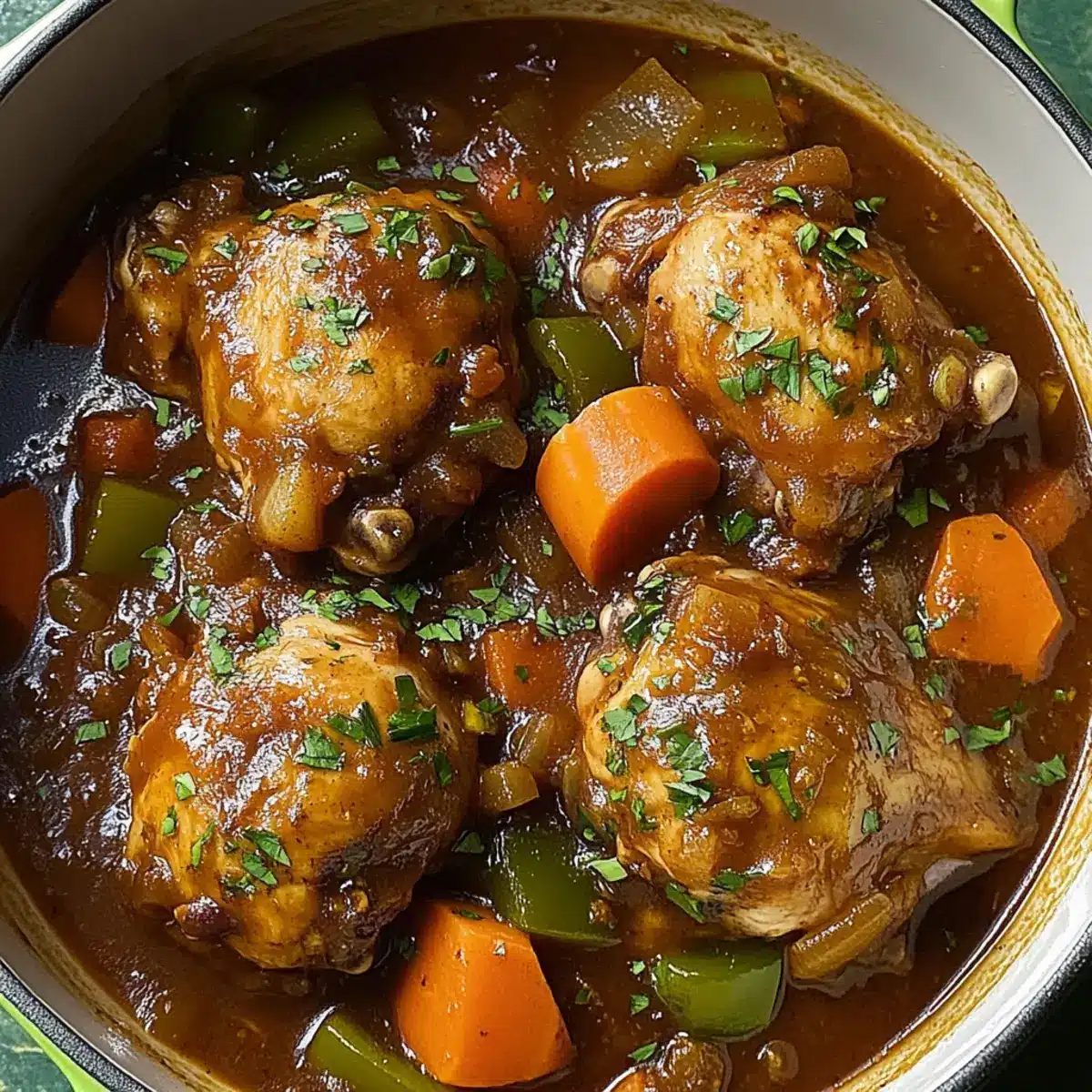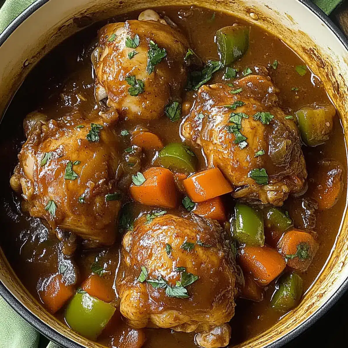 The aroma of simmering spices wafts through my kitchen like an invitation to a vibrant Jamaican carnival. As I prepare this Savory Brown Stew Chicken, I can’t help but feel uplifted by the colorful medley of herbs and spices that transform simple ingredients into a feast for the senses. This heartwarming dish offers just the right level of heat—perfectly customizable for those who revel in a fiery kick or prefer a milder touch. Not only does it shine as a crowd-pleaser for your next gathering, but it’s also a time-saver, making it ideal for busy weeknights when comfort food is a must. Just imagine the joy when you serve it over warm, fluffy rice, earning you instant praises from family and friends. Are you ready to bring a taste of the Caribbean to your dinner table?