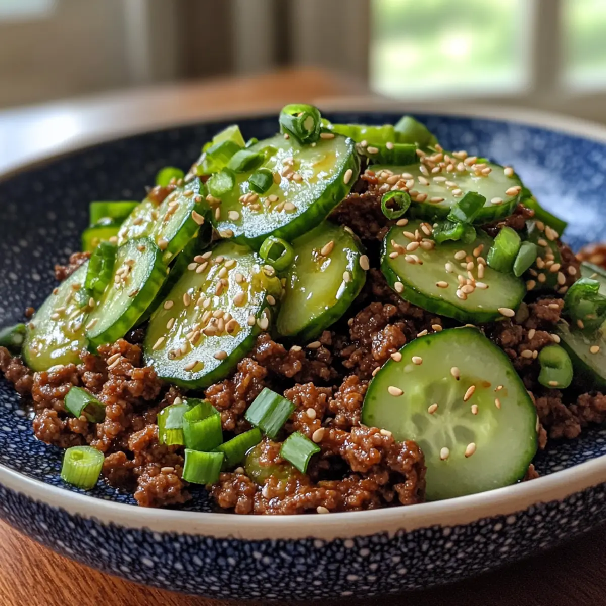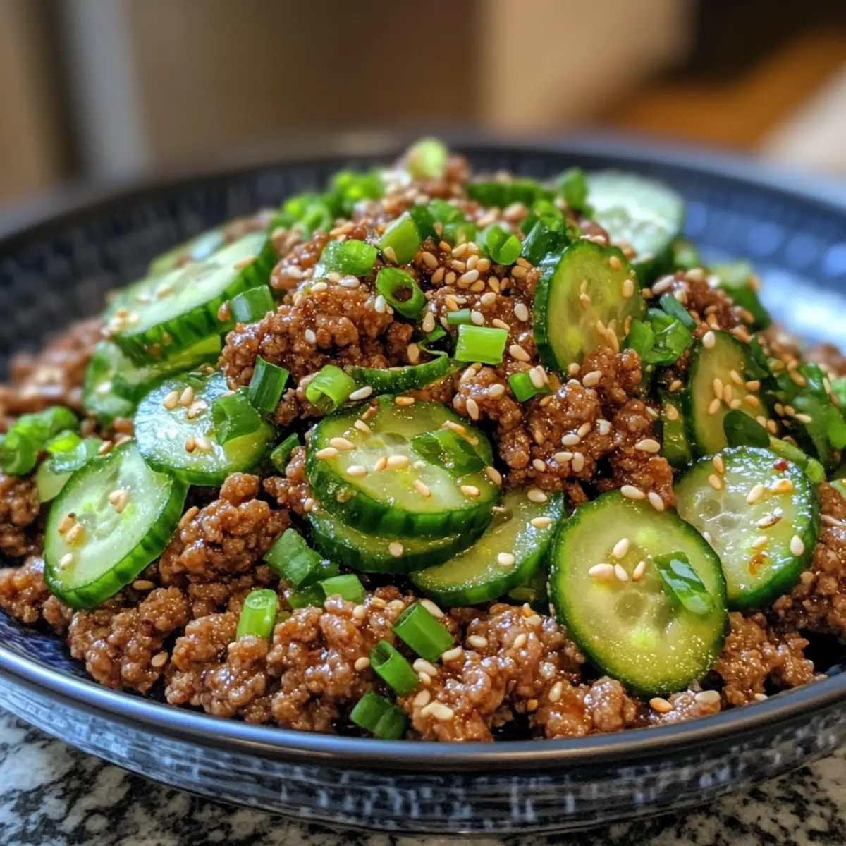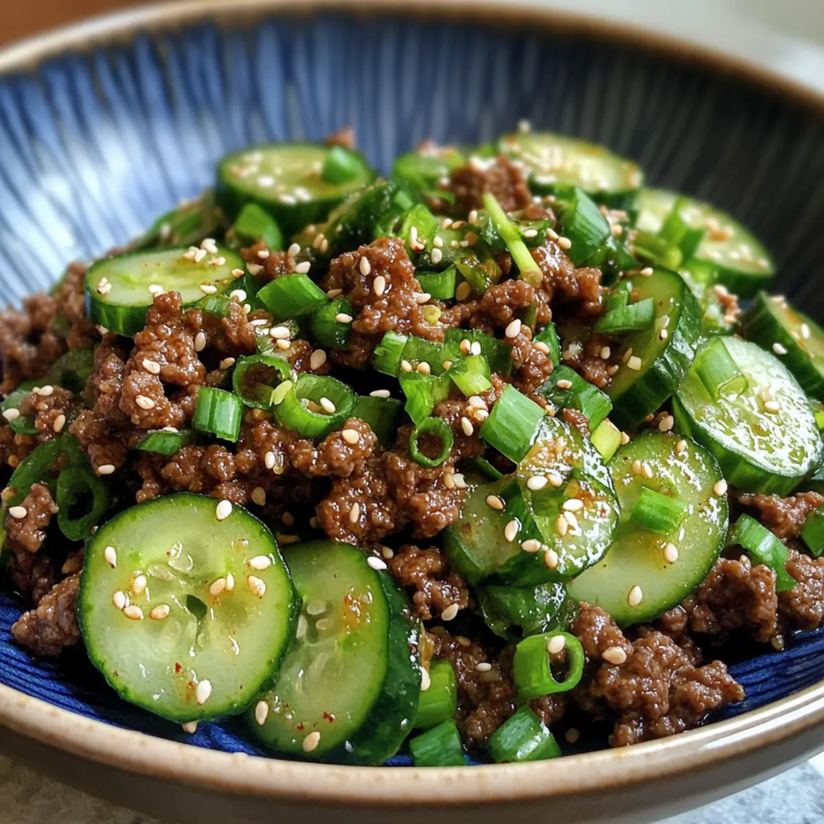 Delicious Spicy Korean Ground Beef with Cucumber Salad Delight