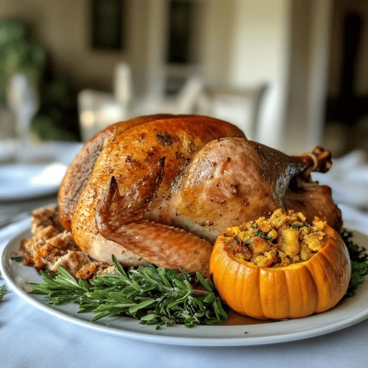 Impressive Centerpiece: Your Thanksgiving table will be the talk of the gathering, showcasing a stunning turkey alongside a vibrant pumpkin dish that is as appetizing as it is beautiful.